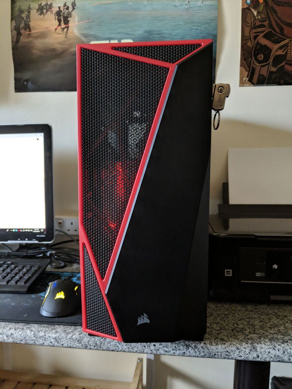 My first build, cables are a little messy but, this is pretty capable machine can can play most games at 1080p 60 FPS and high settings. It has a SSD boot drive for lightning fast boot times, and this can be useful for those programs you use the most. Also it has a modest 500gb HDD for a decently sized games library. There is subtle lighting on the motherboard as well as the GPU to tie the build together. The case features a acrylic side panel so you can glance at your creation and maybe admire the intenals, there is plenty of room to add more storage and to manage cables, and the motherboard allows for upgrading in the future.