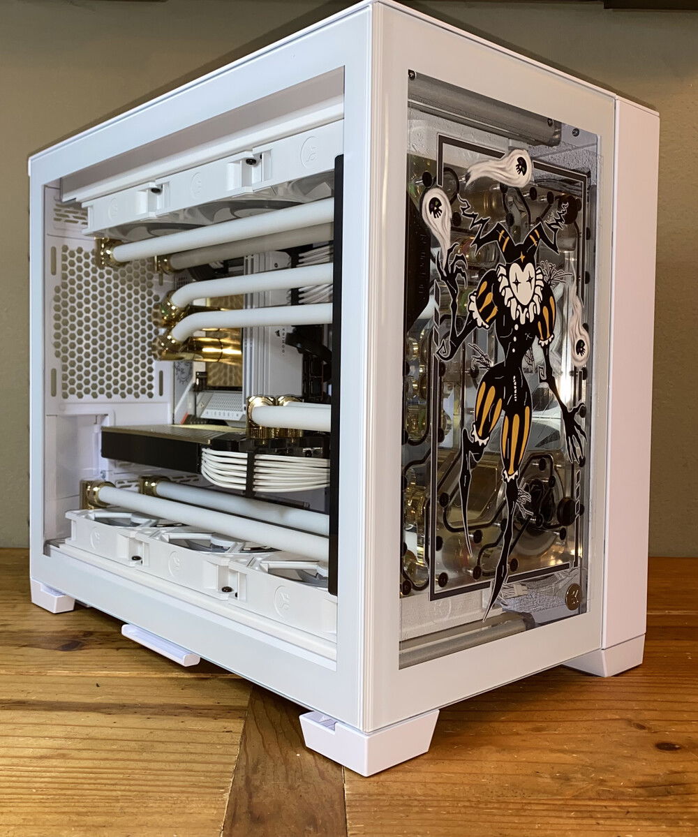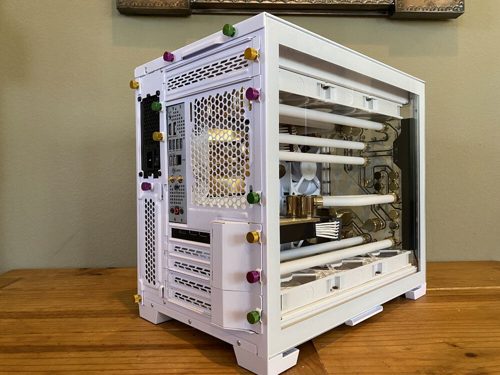 -- Route pump PWM and RGB wires though lower access slots near rear of case.