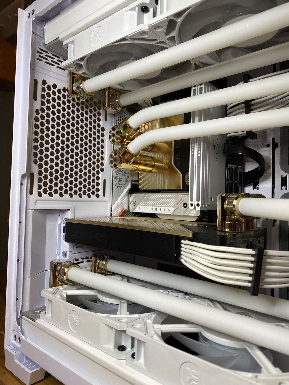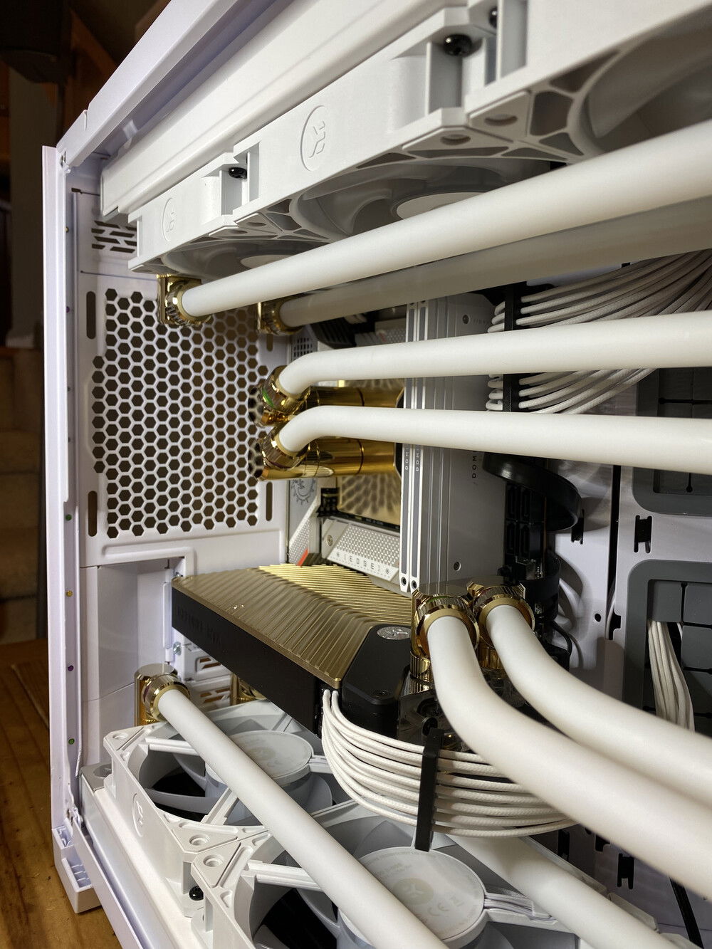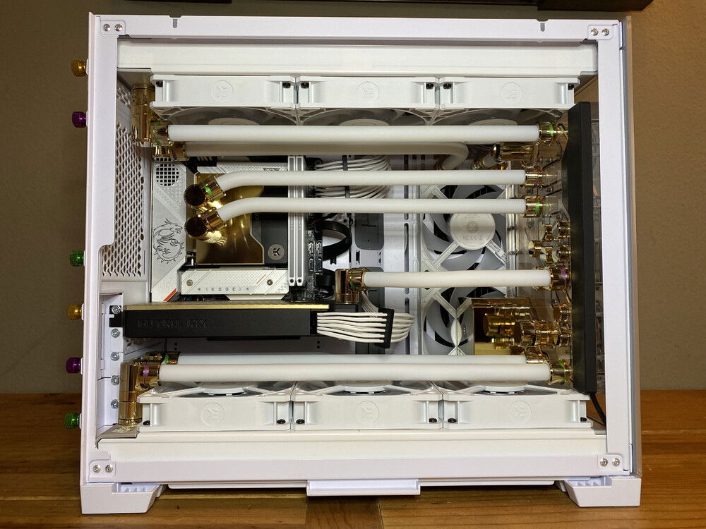 -- install fans on bottom rad as intake with wires on on right side (interior of case when mounted)
