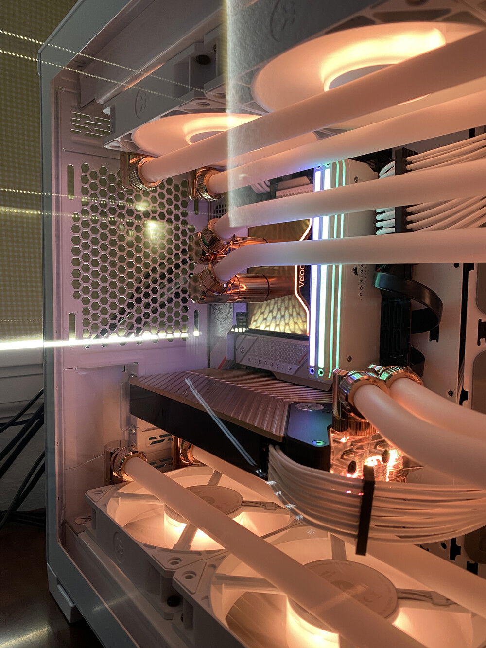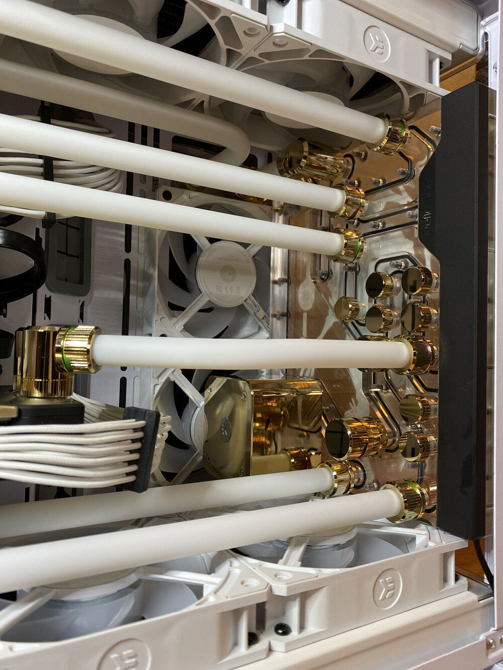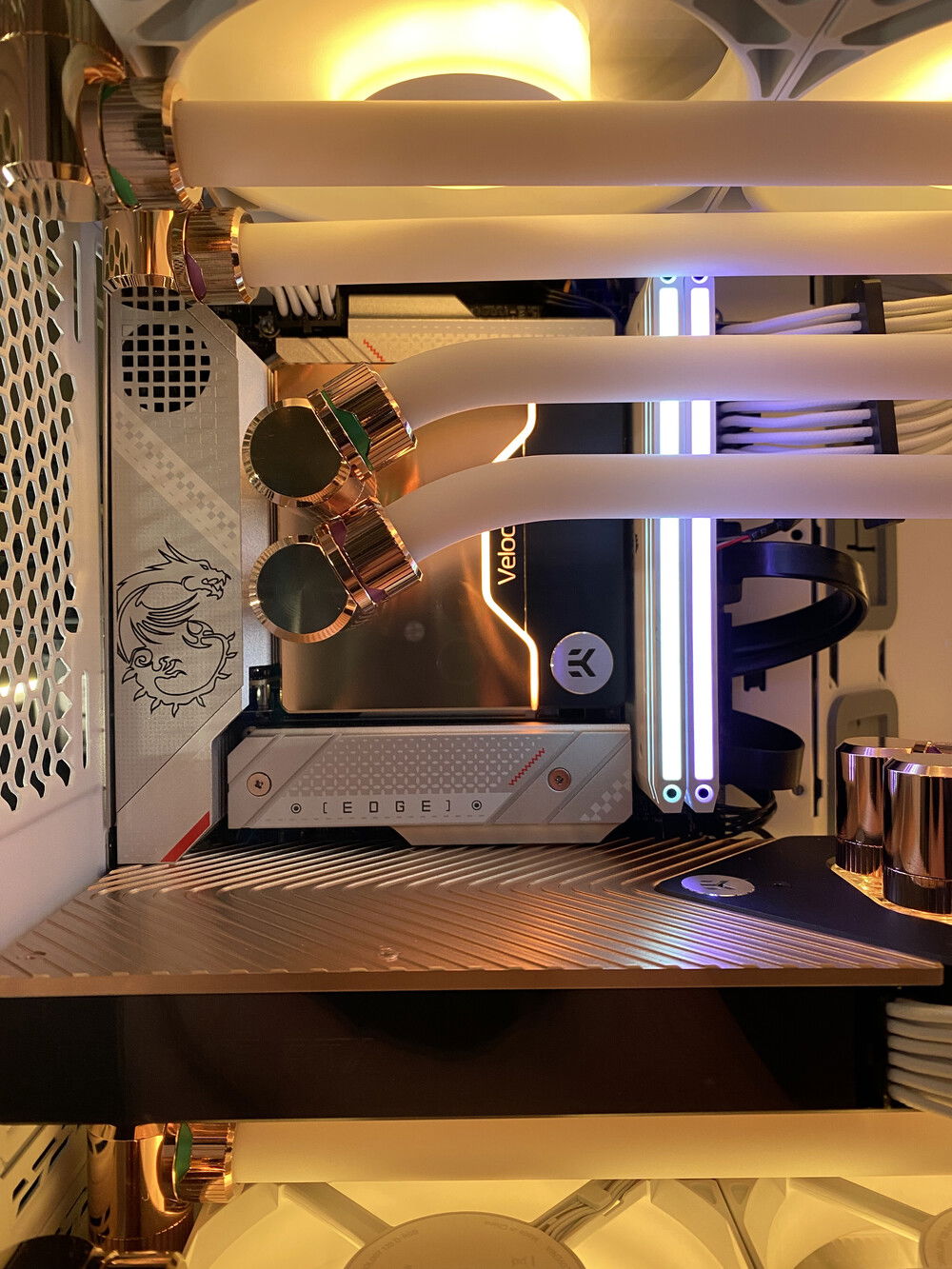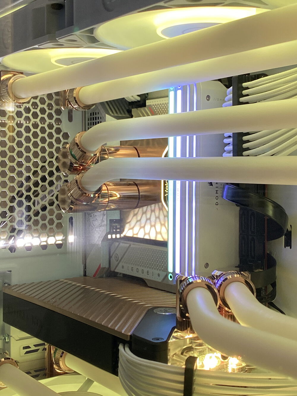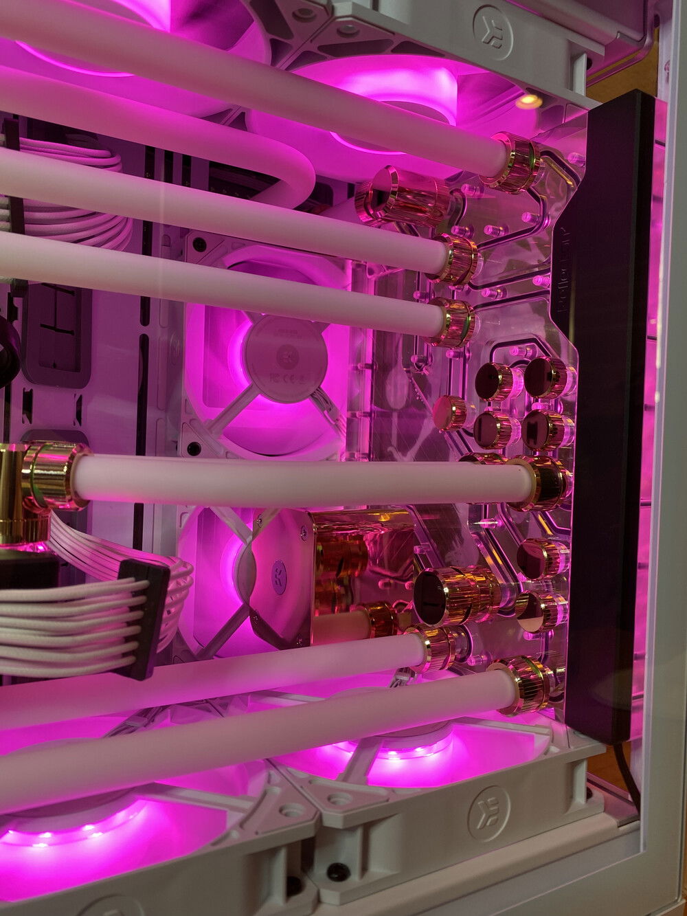 -- Route bottom PWM pump and fan extension wires (only PWM, not RGB) up through all velcro ties.