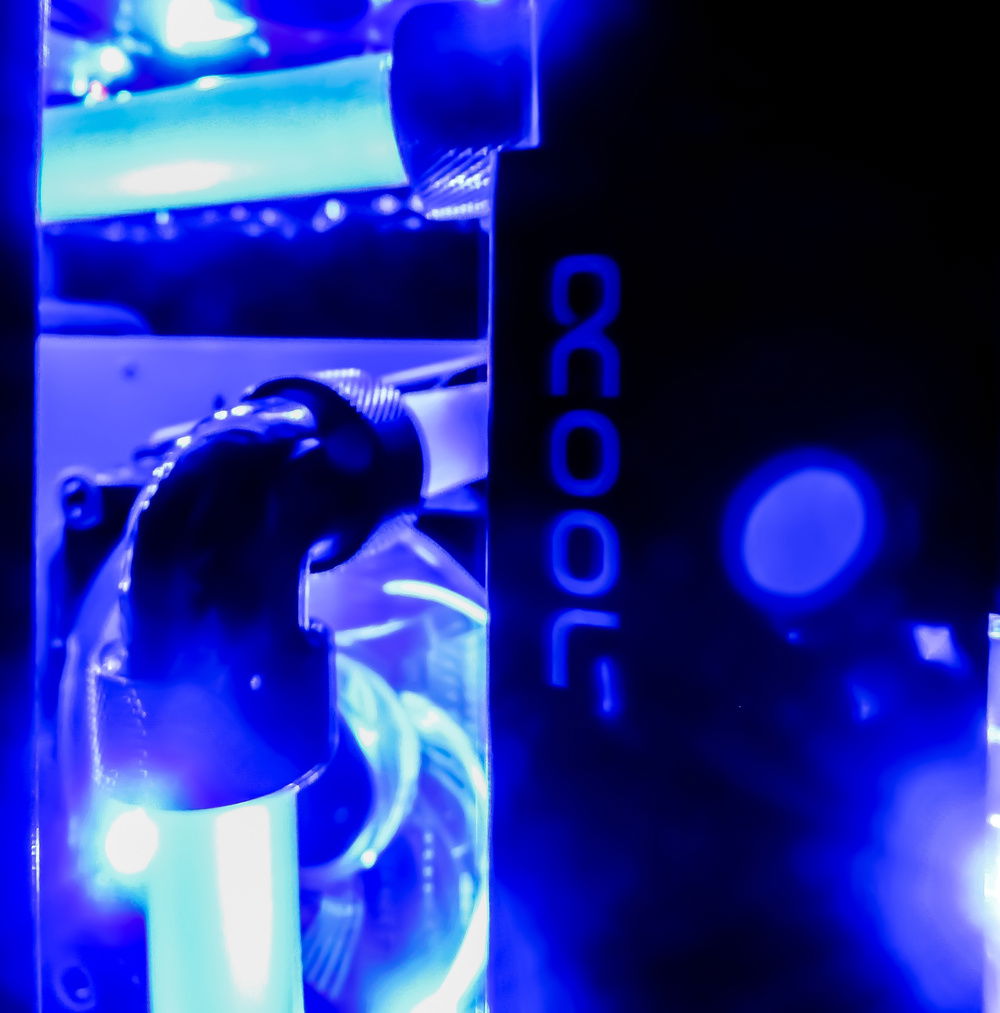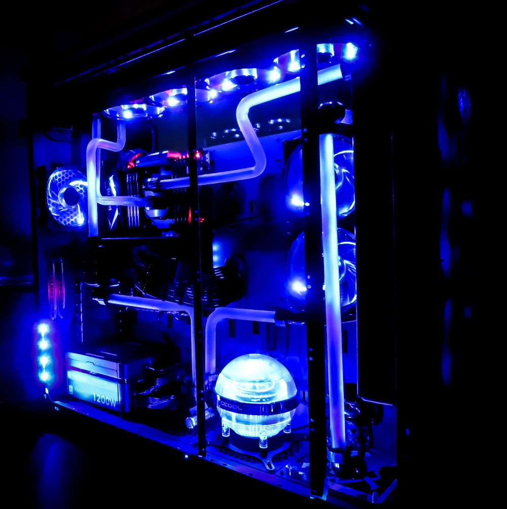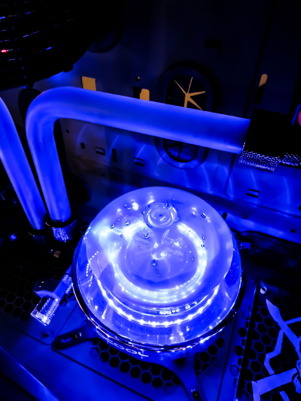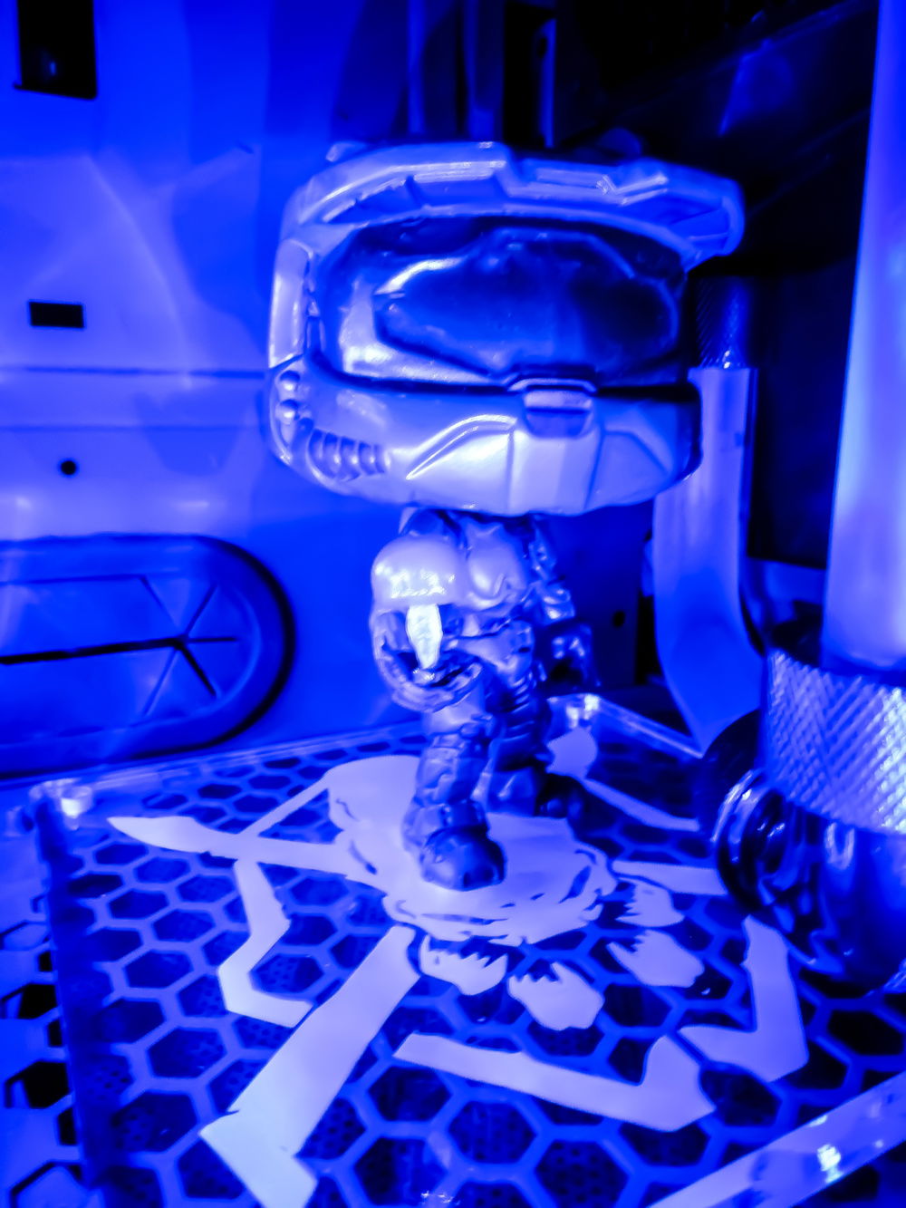 This particular build was my first time doing hard tubing. I frosted the tubes by hand. I painted the entire View 91 TG chassis. I also had custom engraving done on an acrylic panel for Master Chief to stand on. This one may have some odd specs to some, but at that time, we didn't have a lot to work with for parts for the charity. The disabled Veteran that received this was a local veteran that served in the same camp as I did in Iraq.