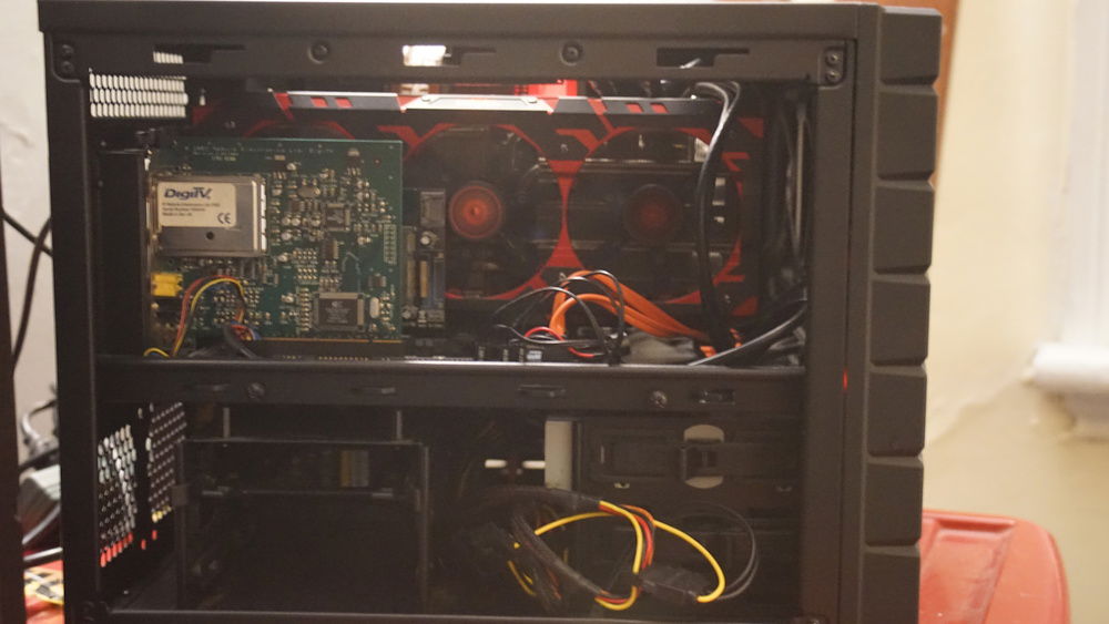 Once I discovered the only damaged part was the original motherboard and other components worked, I bought the ADATA 1TB SSD attached it to the SEDNA PCIe SATA III (6G) SSD adapter I had bought and used in my 2006 MacPro 2,1 (Motoko). Also took the 650watt PSU I had from a very old Athlon x2 rig I had tried to breath new life into as a NextCloud server, pulled out the Noctua NH-D15 and Cooler HAF XB Evo case I was using before I bought the DeepCool Quadsteller case I used for Scar/Scar 2.0. Finally took the Vega 64 out of Motoko and pulled out the PCI DVB-T TV tuner card I have had since 2007 from the box it was sitting in, connected everything and Installed elementary OS.