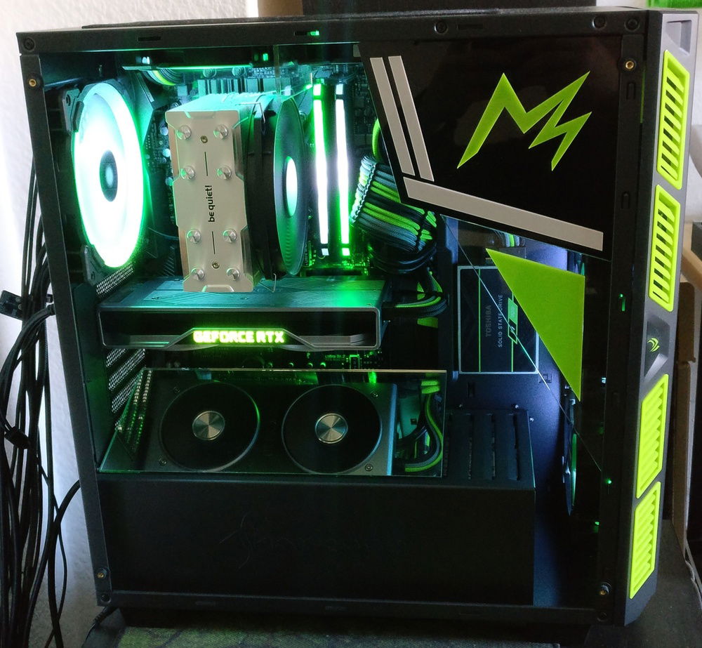 What's special about this build? - An angled mirror underneath the GPU to show its full glory (vertical GPU bracket did not look that good) - Top fans are one in / one out with an acrylic airflow divider inbetween to supply more airflow to the CPU cooler (instead of stealing air from it) while also helping exhaust the hot air and make use of the RGB - custom made acrylic parts to hide the ODD cage (yes, I still use an optical drive)