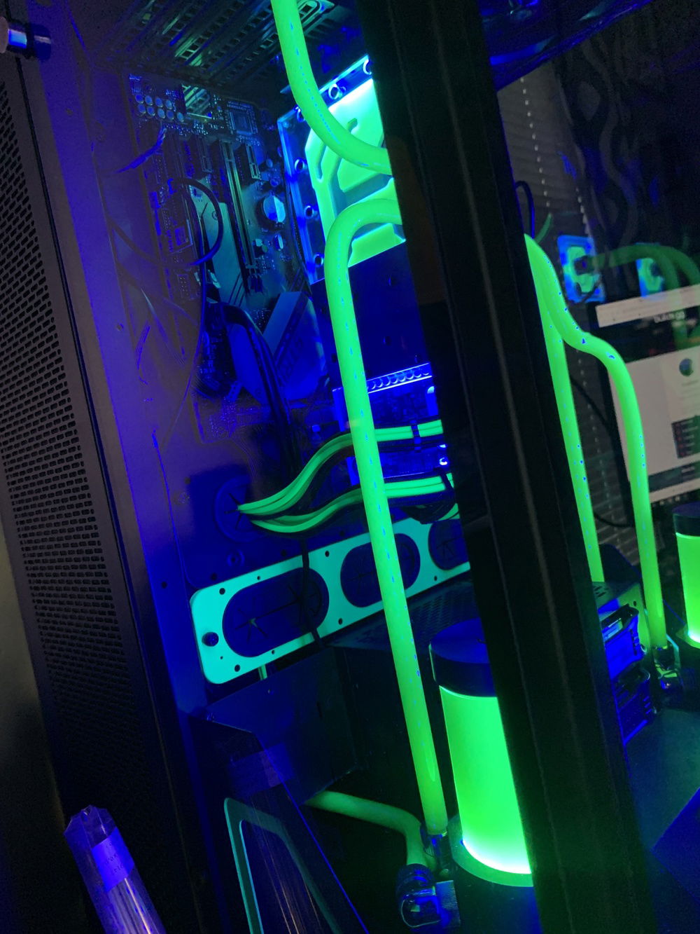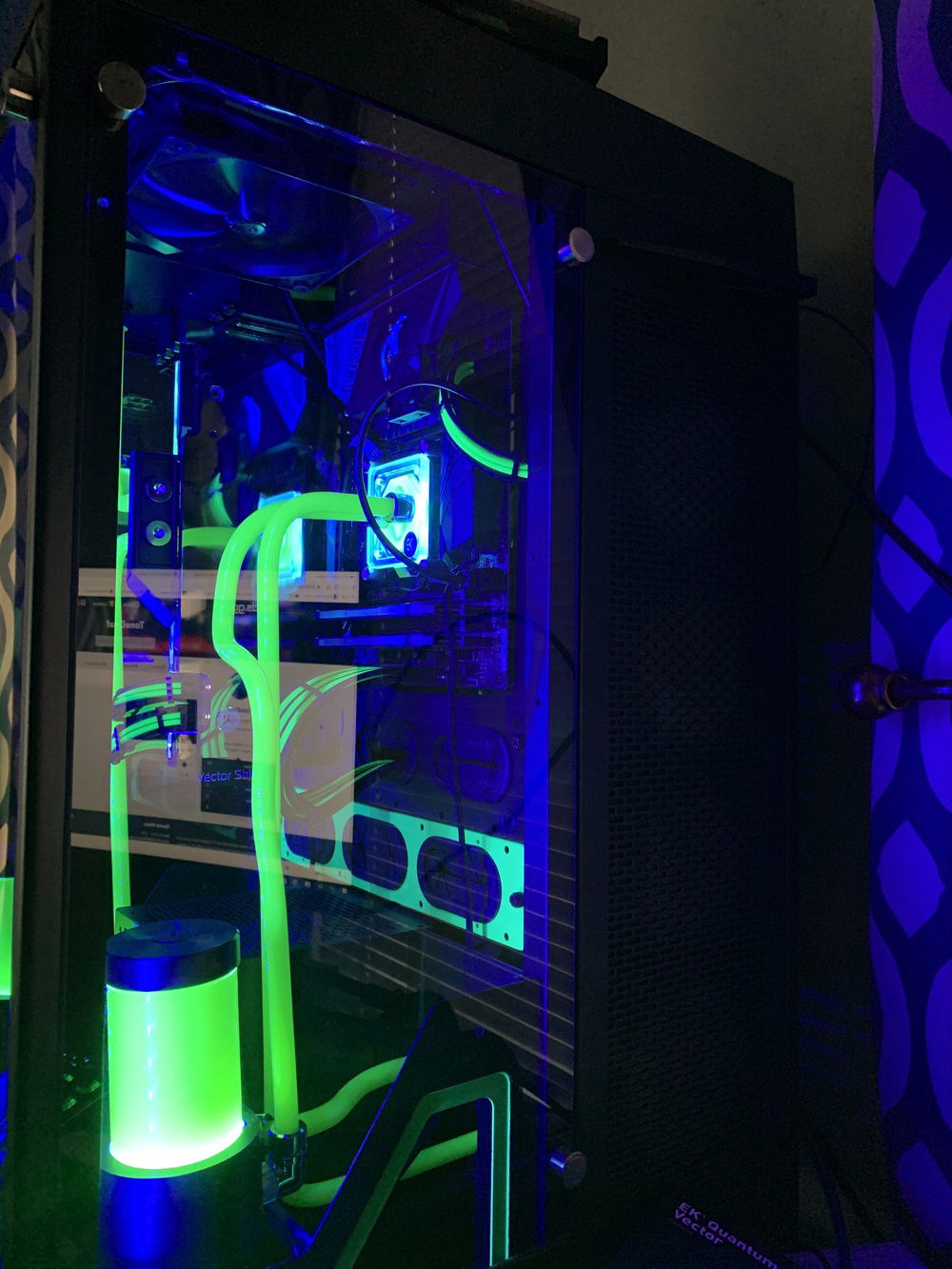 Just a pic of the whole setup. This is all the same stuff as the ab condensate with the exception of the Cable Mod cables and the EK cooling stuff.