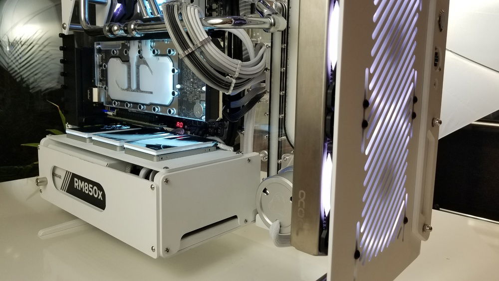 The theme of the build is from the case brand, Singularity Computers. A singularity is the centre of a black hole. I called it Gargantua from the black hole in Interstellar. The name is sick and the movie is one of my favorite ever. This is why the music is from Interstellar also. I like the fact that it's a HUGE black hole and one of the most powerful thing in the universe. I find it fits well my PC!