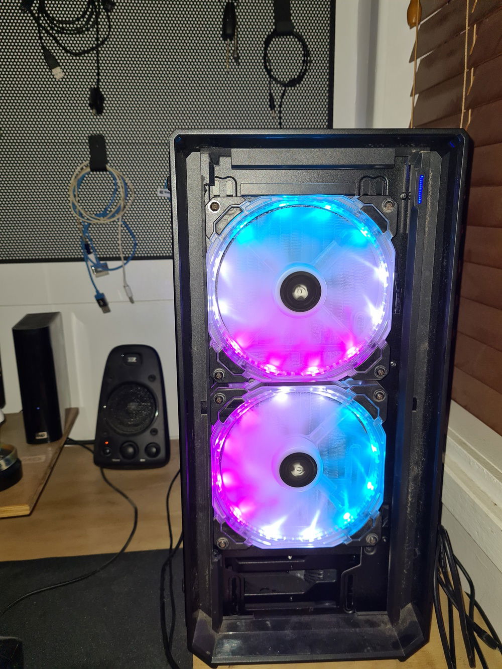 Updated cooling to Corsair 110i 2800mm AIO modded front panel to accept said cooler. Added intel NVME drives 512gb for boot and 1tb for games, but still have samsung ssd and WD 2tb HDD. put in a corsair commander pro for lighting and fan control. Photos are in the build of updates
