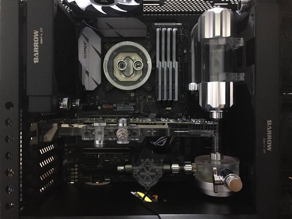 Barrow RGB CPU copper block Barrow 120mm copper radiator Barrow 360mm copper radiator Barrow 14mm silver fittings (14 pcs) Barrow 90 degree silver fitting Barrow RGB GPU block with controller Barrow DDC pump and pump top Barrow silver reservoir