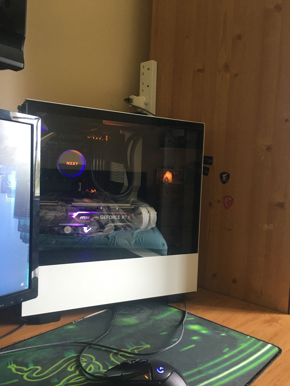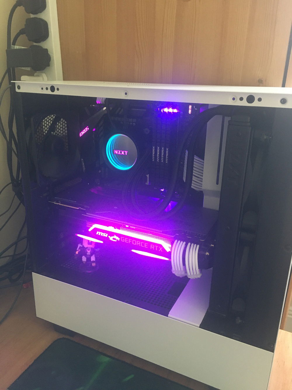This is what it looks like currently, it originally had a budget z370 board and a be quiet dark rock 4, over the lock down I got the white cable kit, 2 more 8gb sticks of ram and the nzxt x63
