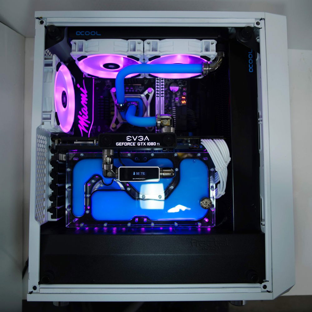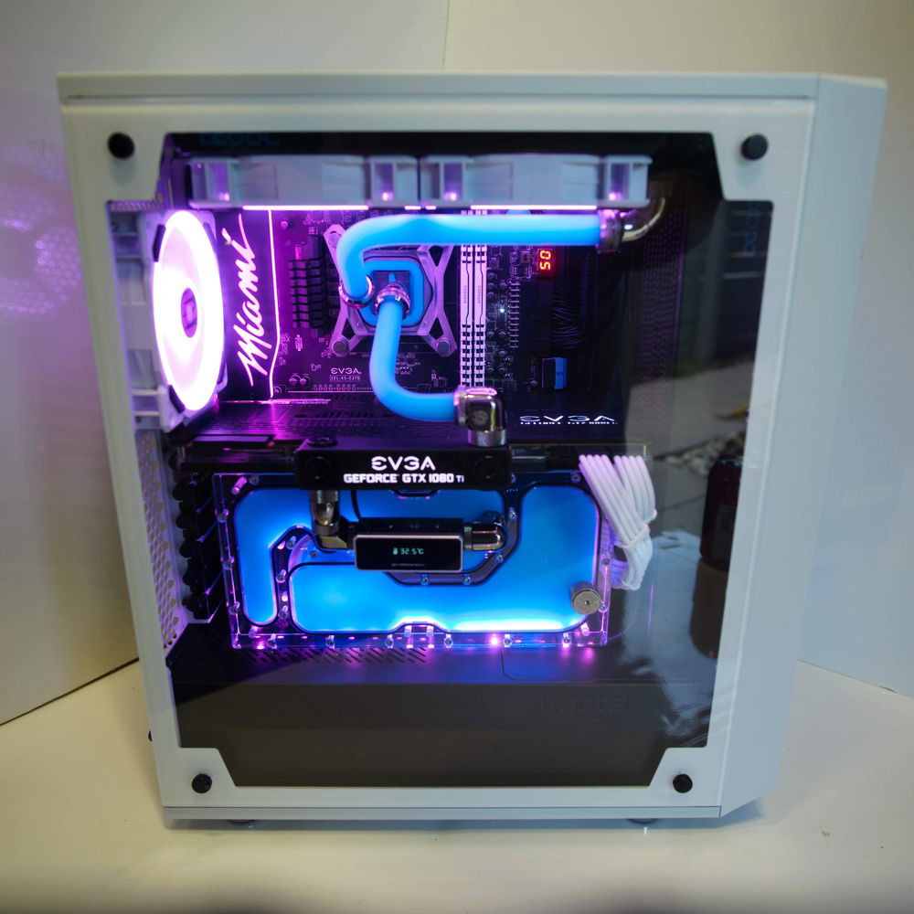 Fractal Design Meshify C White EVGA Z370 Micro Intel 8700k OC to 5.0GHZ EVGA GTX 1080 Ti FTW3 Corsair LPX (Bdie) @ 4133Mhz C17 WD Black 1TB NVME CableMods White PCIE extensions