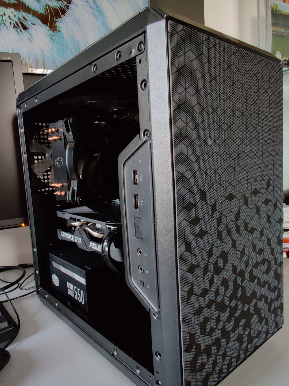 For the price, the Masterbox Q300L is an amazing piece. Great design, good cable management options and enough cooling options. The Ryzen 6-core is plenty for his needs and paired with the 1660 really does the job very well, on his 1080p 144Hz screen (Acer XF240H). G-sync compatible, so the FreeSync works flawlessly with the Nvidia GPU.