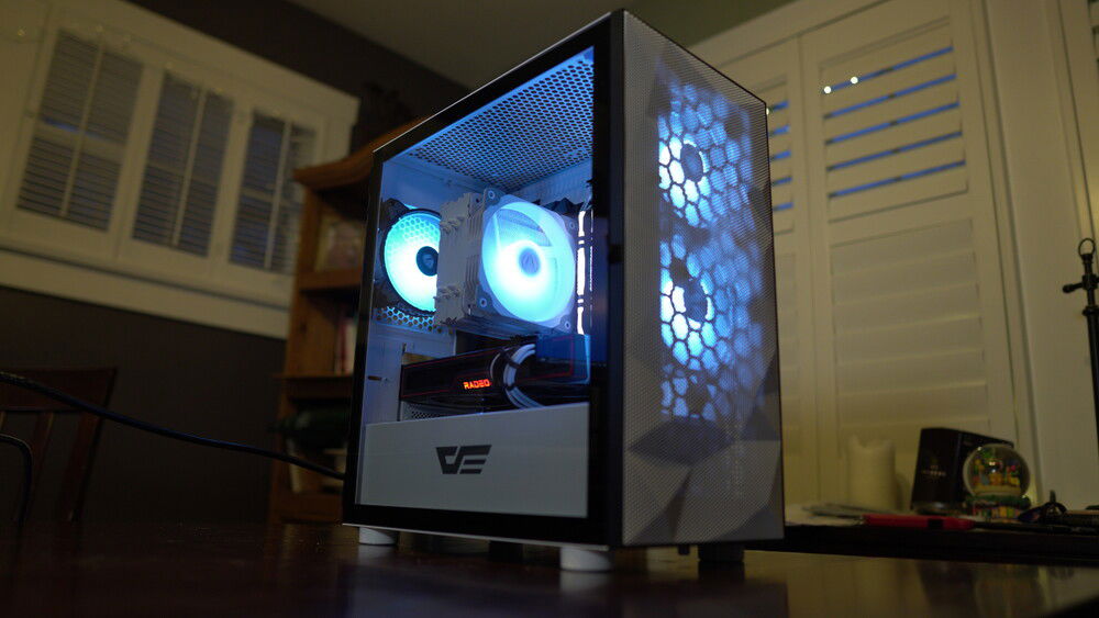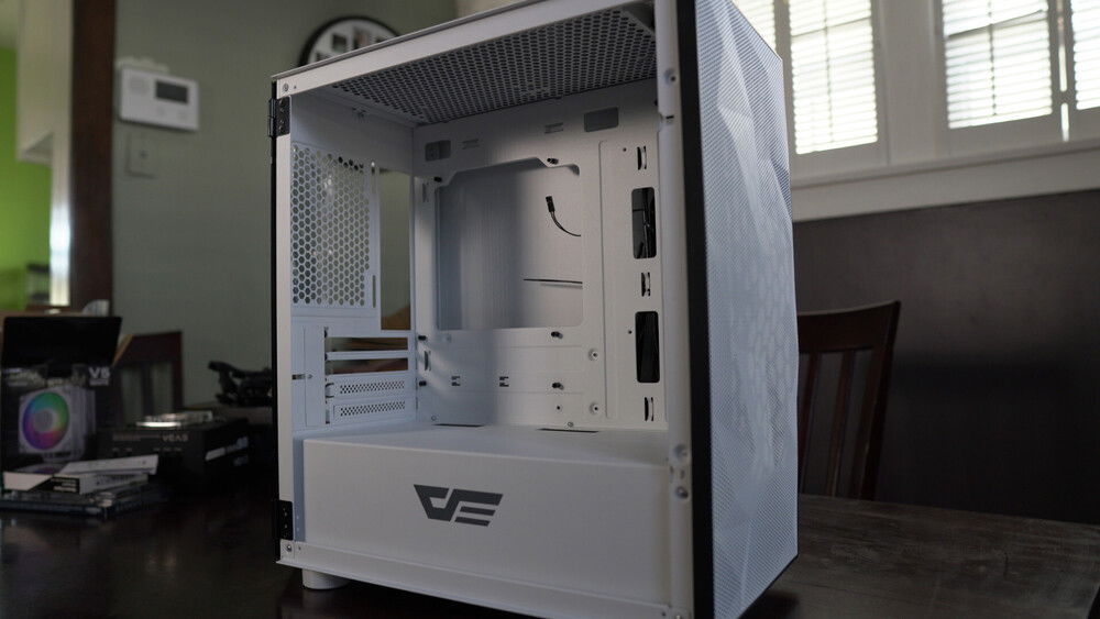 Ever since I saw the DarkFlash DLM 21 Micro-ATX case, I wanted to get it to have a look at it. Unfortunately, everywhere I have looked it’s been sold out. Fortunately, I found one on eBay through the DarkFlash store there. It is a refurbished version, but that’s okay. I wanted this mesh model because it’s very reminiscent of Fractal Design’s Meshify case series but it costs much less. Of course, this decreased price also comes with less features. For one, it’s an mATX case, so only mATX or smaller motherboards will fit in it. It also comes with no fans, has no grommets for cable management, and the PCI slot covers are not re-usable—in fact I’m missing two. The front I/O also doesn’t have a Type-C header but does have two USB 2.0 ports and one USB 3.2 Gen 1 port. The power and reset buttons are nice and clicky at least.