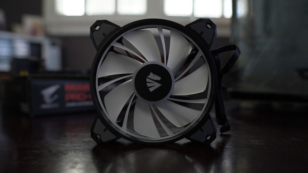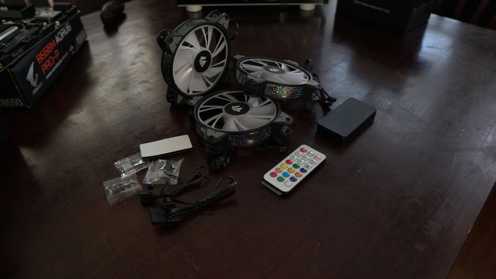 Because no fans come with the darkFlash DLM21 Mesh, I am using a 3-pack of Asia Horse’s Magic N’ ARGB fans. I’ve used Asia Horse in the past, so when these went on sale for $25.00, I figure I’d try them. After opening them up to get a look, I will say they look cool, but they don’t necessarily feel good. They’re a bit flimsy compared to the other Asia Horse fans I used which were the FS9001-ARGB. These Magic N’ ARGB fans come with a controller and hub which is good as the non-standard connectors they use means I can’t directly plug them into the 3-pin ARGB headers on the motherboard or control them via Gigabyte’s Fusion software.