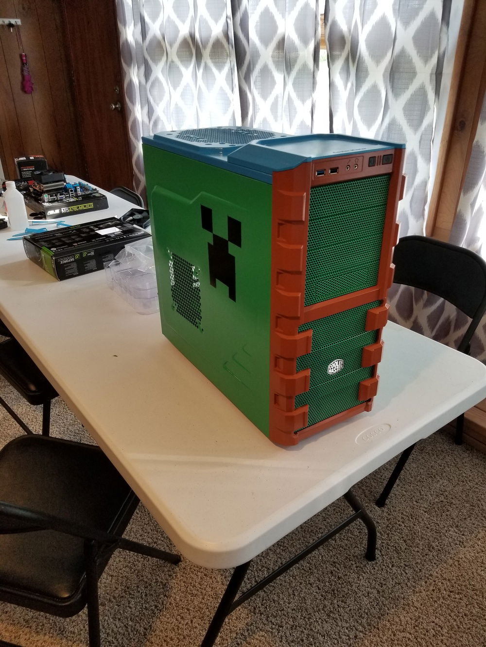 This was a fun build with my little brother in law. Started as a black case and turned into minecraft with a few cans of spray paint. Not the most powerful build out there by no means, but just what he needed to run fortnight and minecraft and what other little games he likes to play.