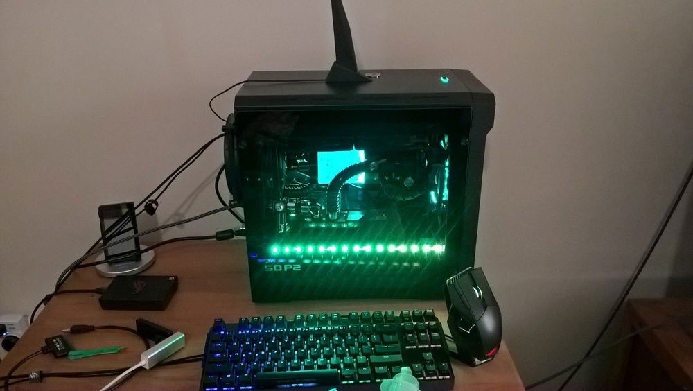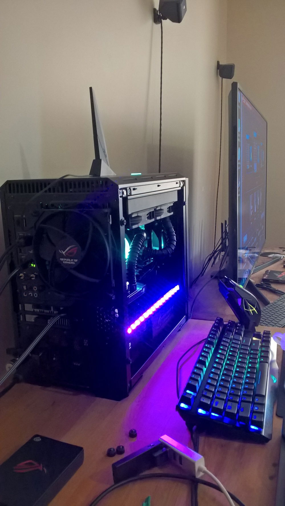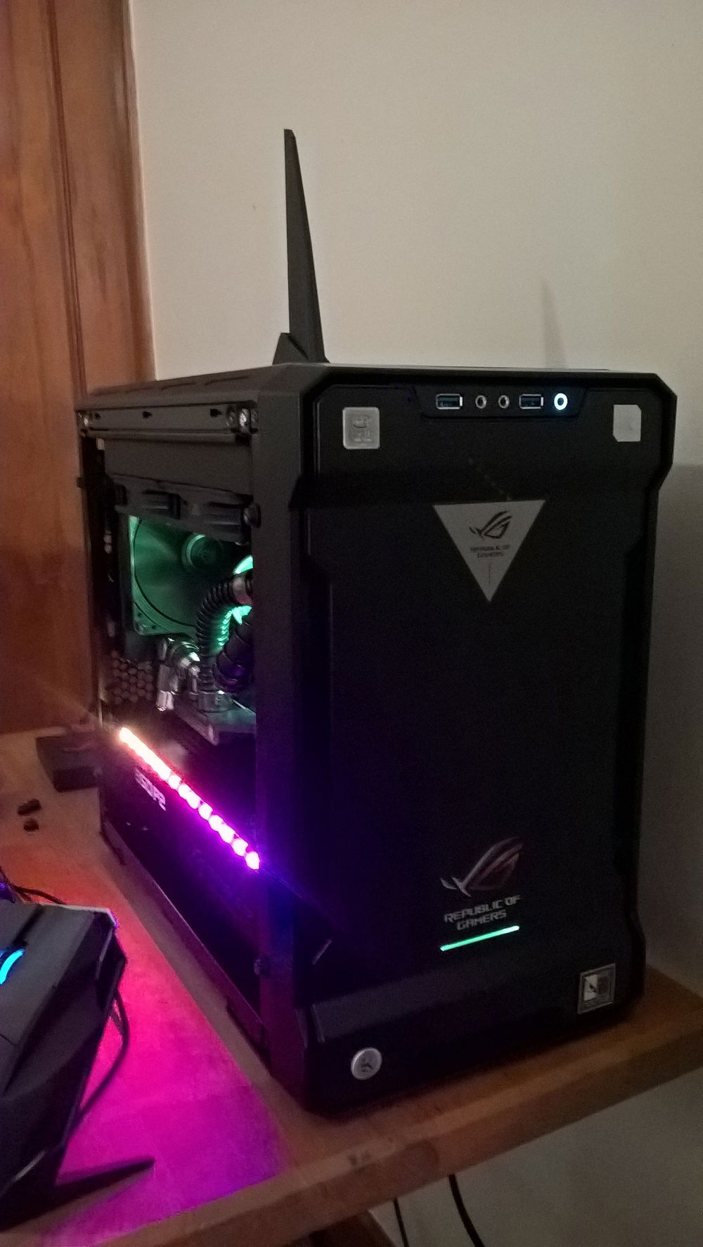 I put the Fill port next to aerial on top and the drain port by PSU at the rear lowest possible point.. Push / Pull config, x2 Be Quiet! 140mm (front intake fans.) x3 Noctua Industrial 120mm (all Push) x2 Noctua slim 120mm (Top Pull) x1 Be Quiet 140mm (Rear Pull) My first Liquid build has been fun. I used not a single rotary fitting. Fans are connected by dual Noctua Fan Controllers controlled and tuned by the motherboard PWM I have used silicon grommets, anti-kink coil 1/2" - 3/4" with EKWB ZMT Black Tubing. A 120mm Phantek Aluminium RGB bracket is used as a more secure mounting base for the pump bracket. For Gaming Sessions I Remove the front Panel for better airflow. I like so many others await the release of ASUS ROG Swift PG35VQ and x4 lane 810p Optane 22x80mm.