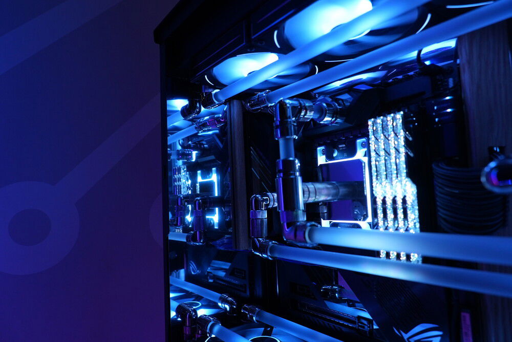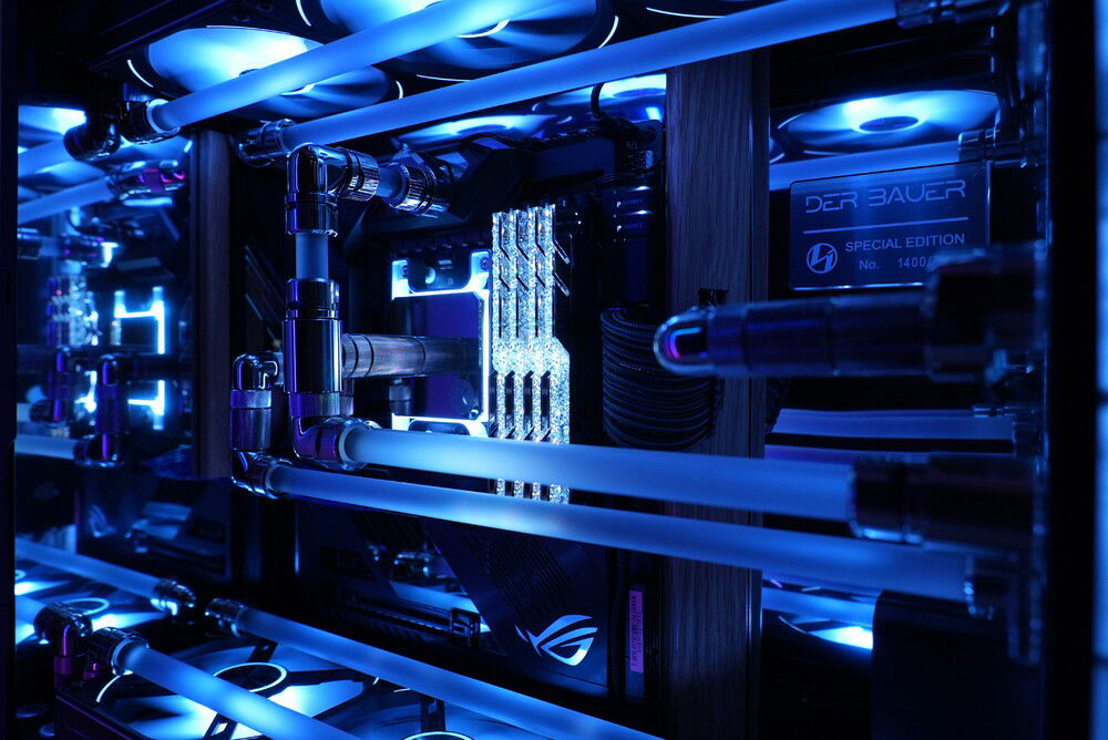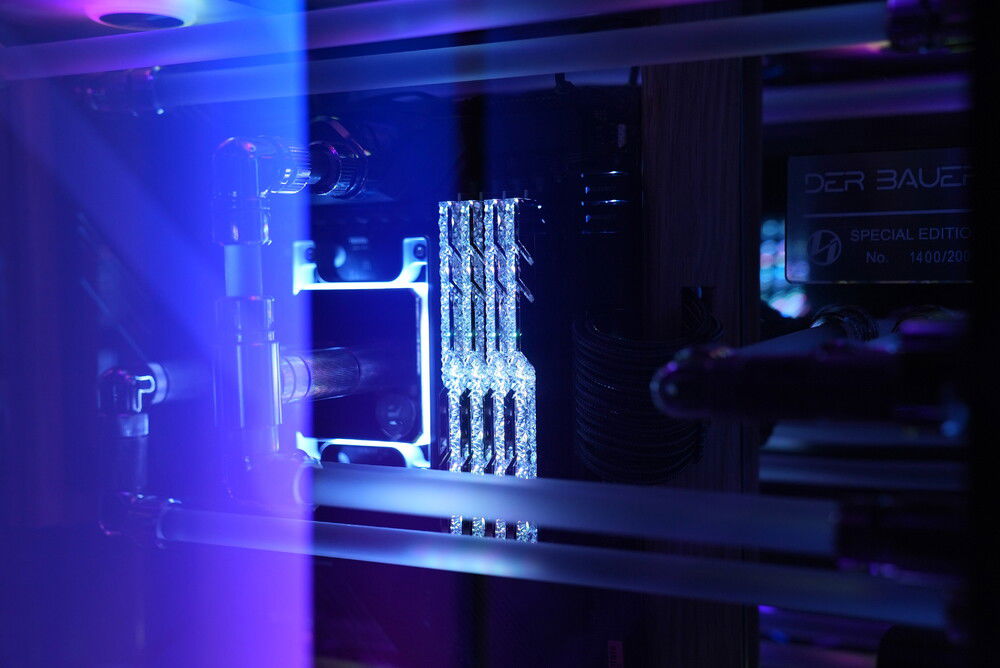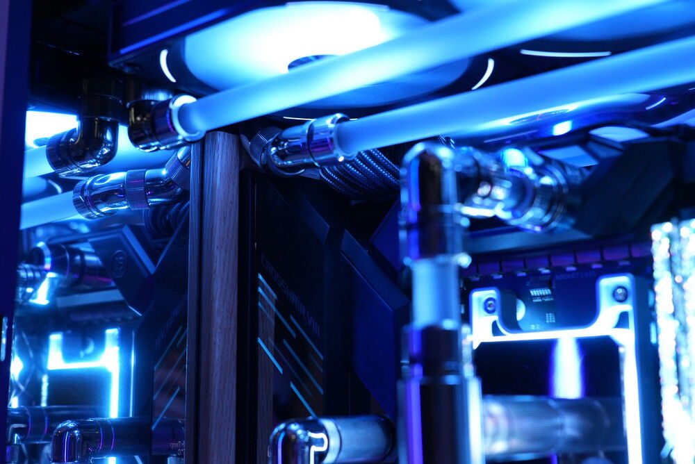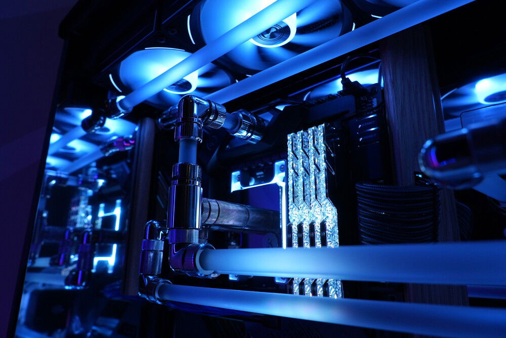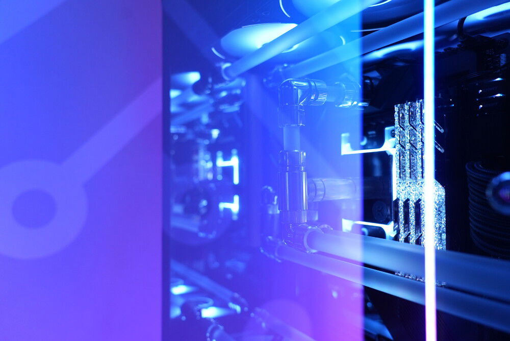 Custom build in the Lian-Li O11 dynamic PCMR Limited edition. Reworked the case to fit the gpu in the back with mirror glaspanels on both sides. Full custom loop and infinity mirror effects everywhere.