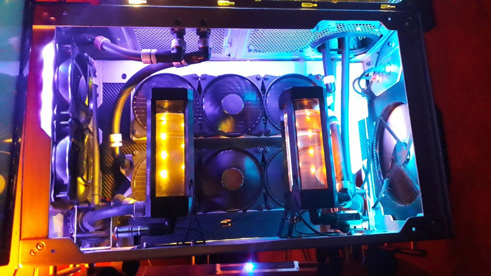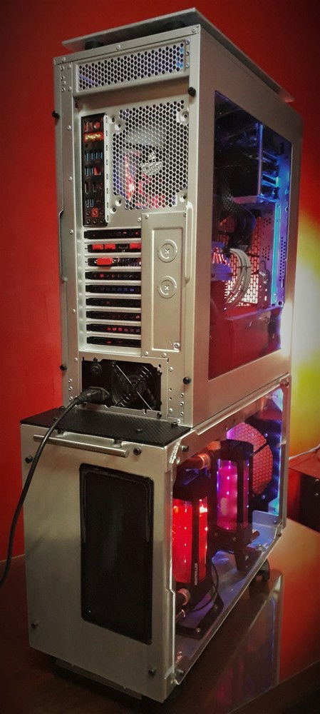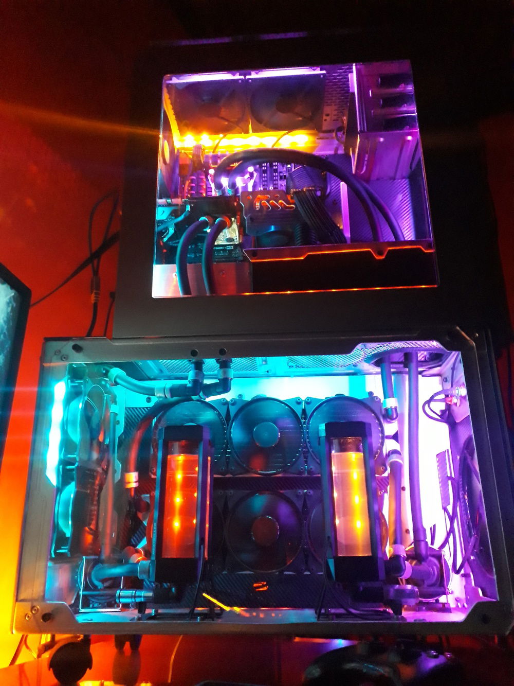 Corsair 750D Airflow Edition + Custom Pedestal For dual loop watercooling componentsLink to detailed Worklog Here, much funny metal , handcrafting, electronic mods & paintjobHardware ( a bit old generation ) :
