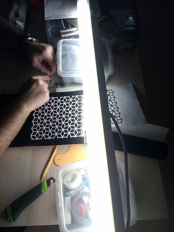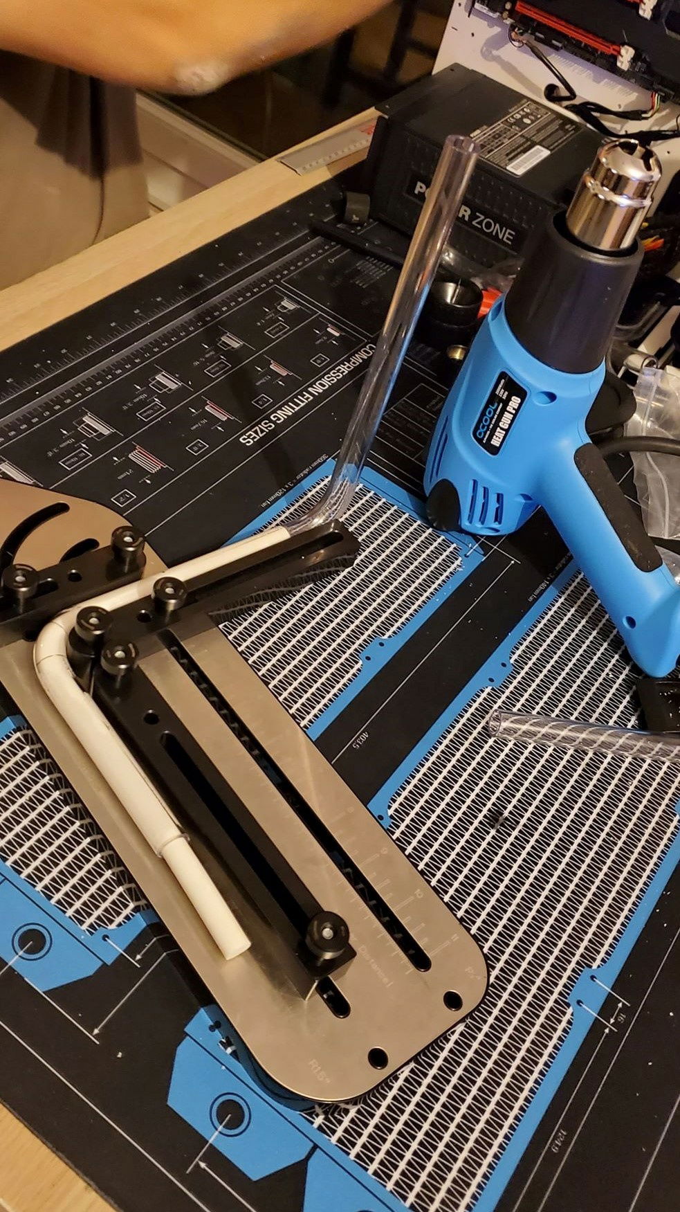 Concernant les modifications : - Création d'une plaque rétroéclairée (RGB) - Réalisation d'un motif au vinyle. - Mise en place de la carte graphique à 180° C. - Mise en place du radiateur à 90° C.