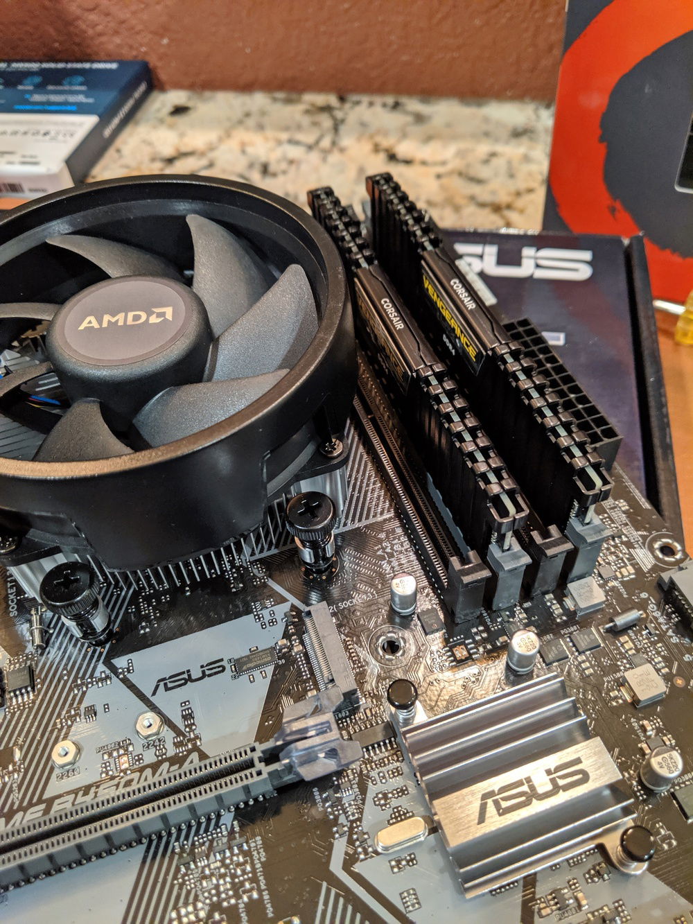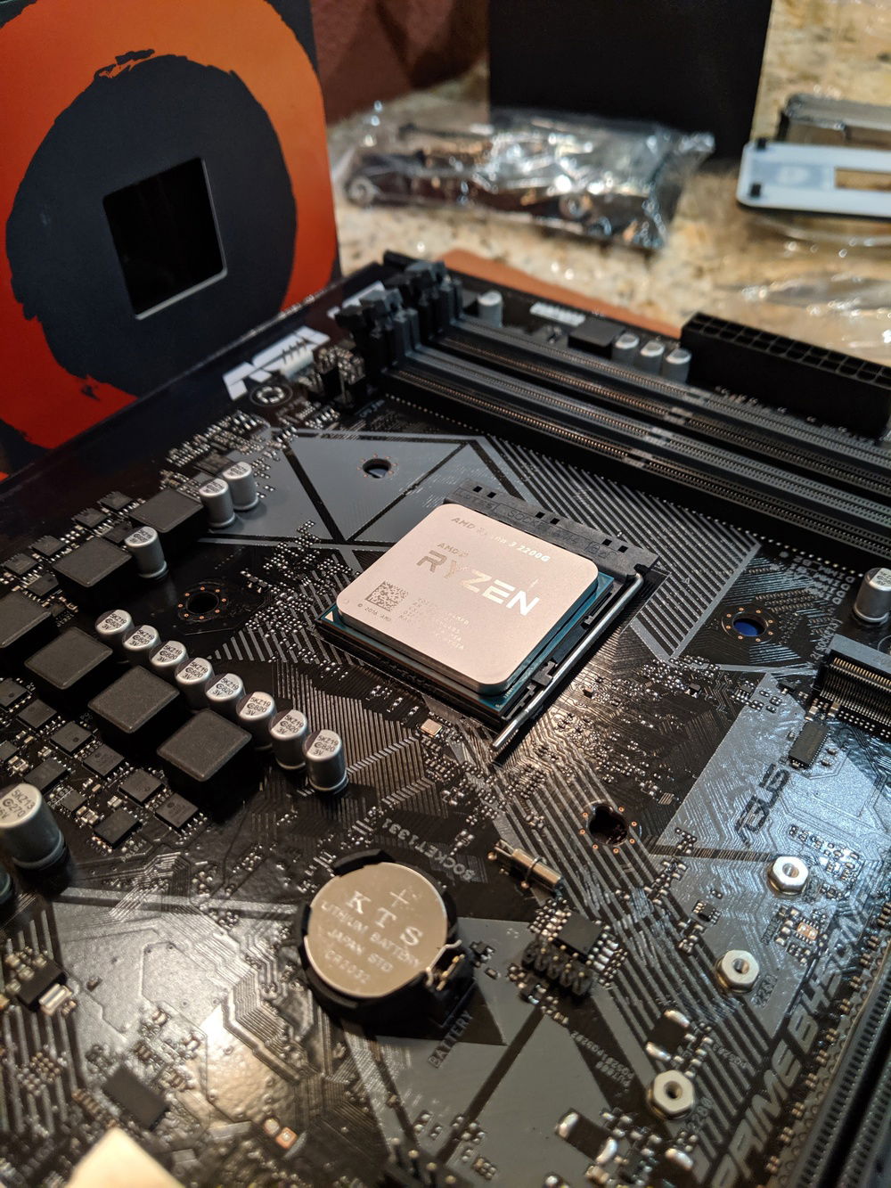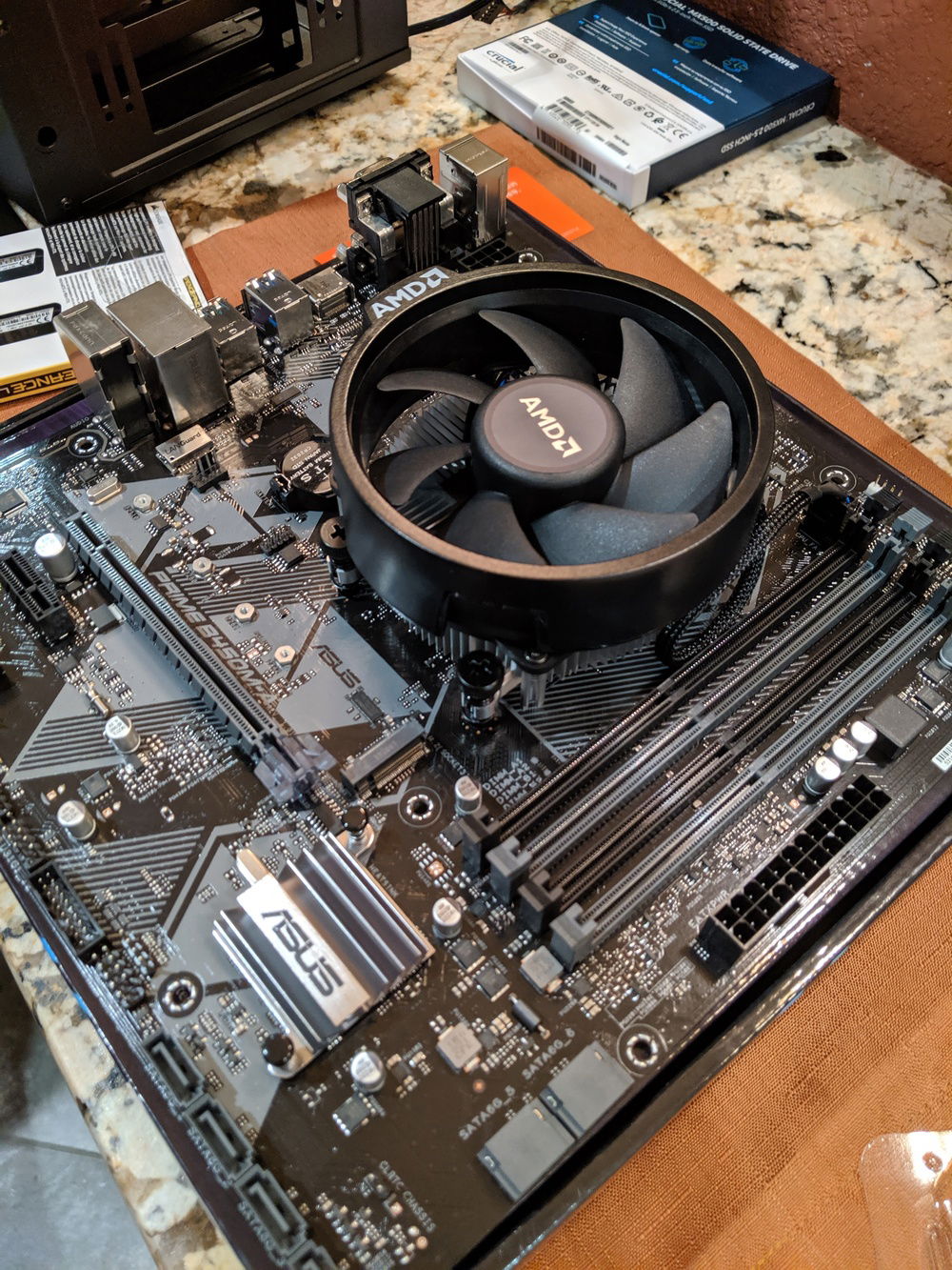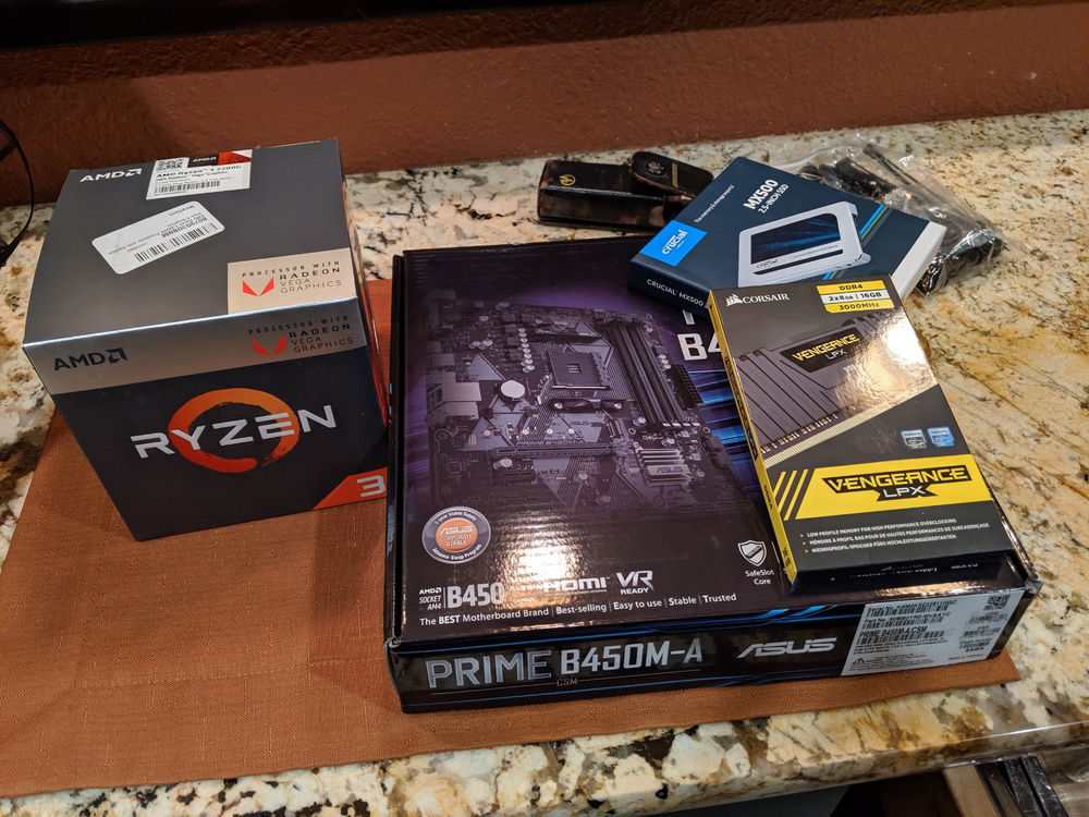 The new system is a Ryzen 3 220G and a Asus B450M-A motherboard.