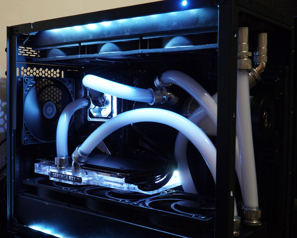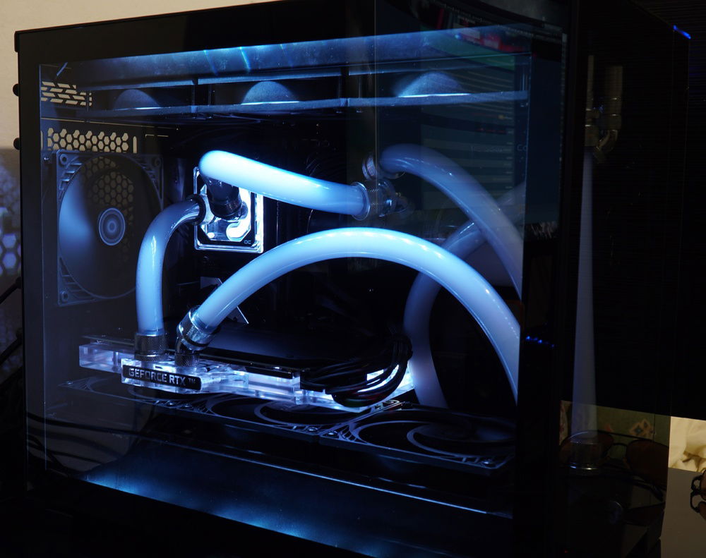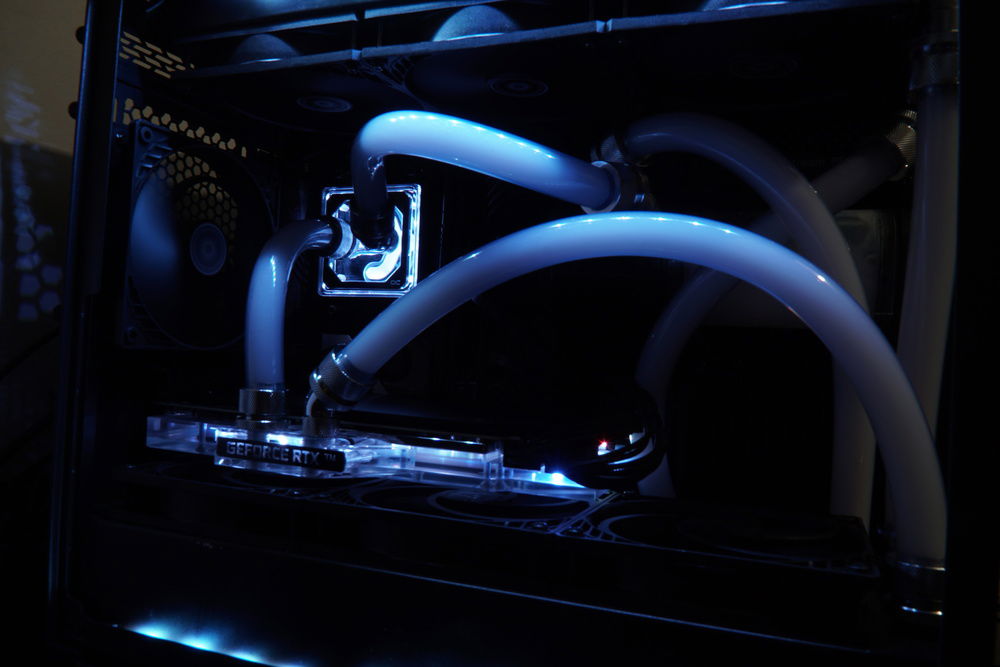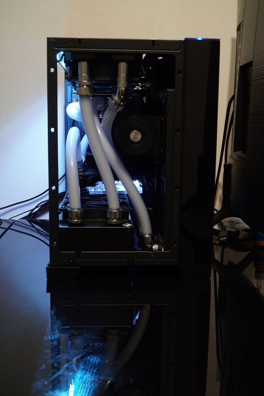 The tubing looks messy but i honnestly had no choice. They are 19mm, the fittings are big and if i wanted to use 3 radiators and a D5 pump it had to be like that. Also, i had to recycle the cooling hardware.