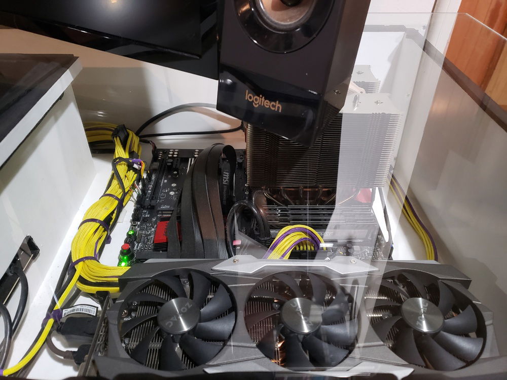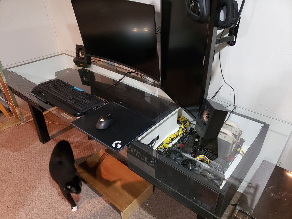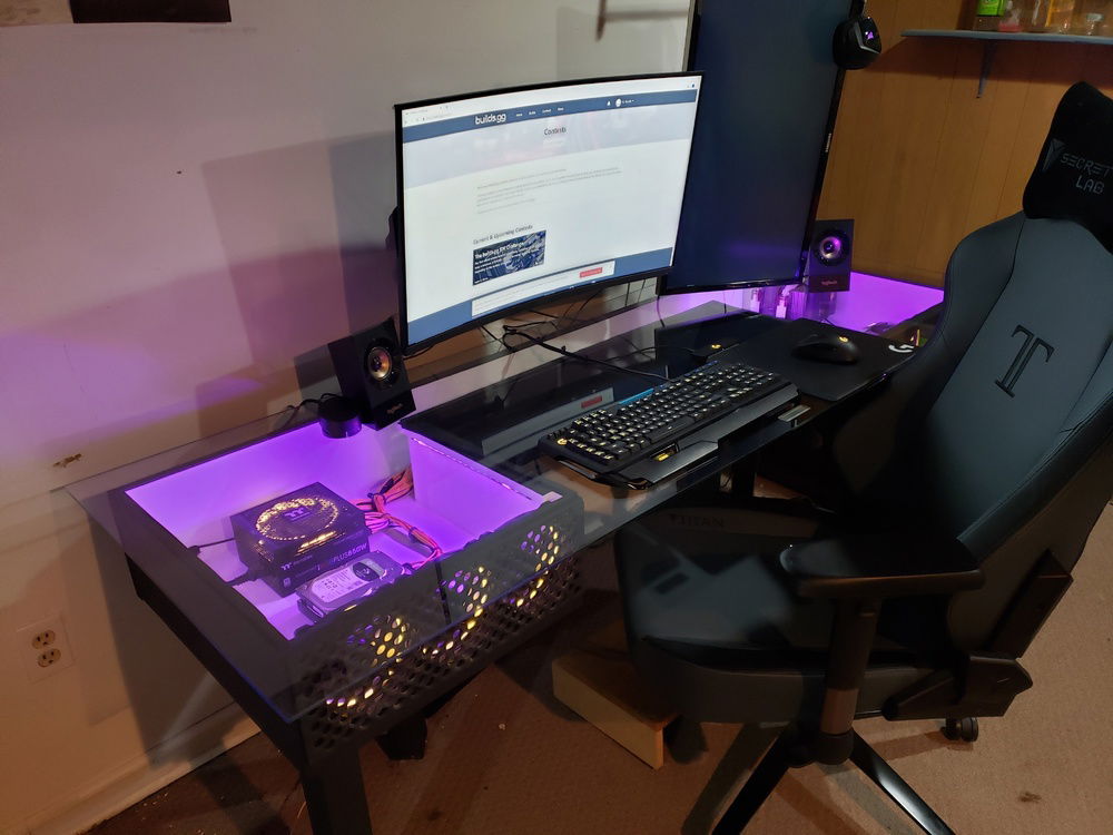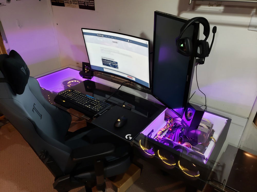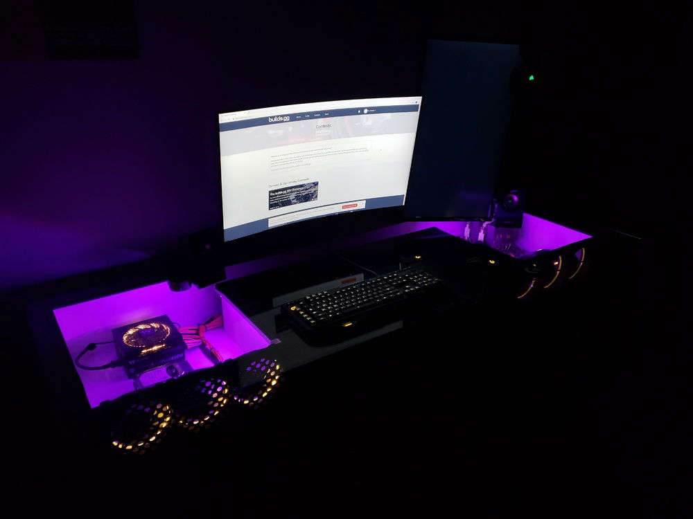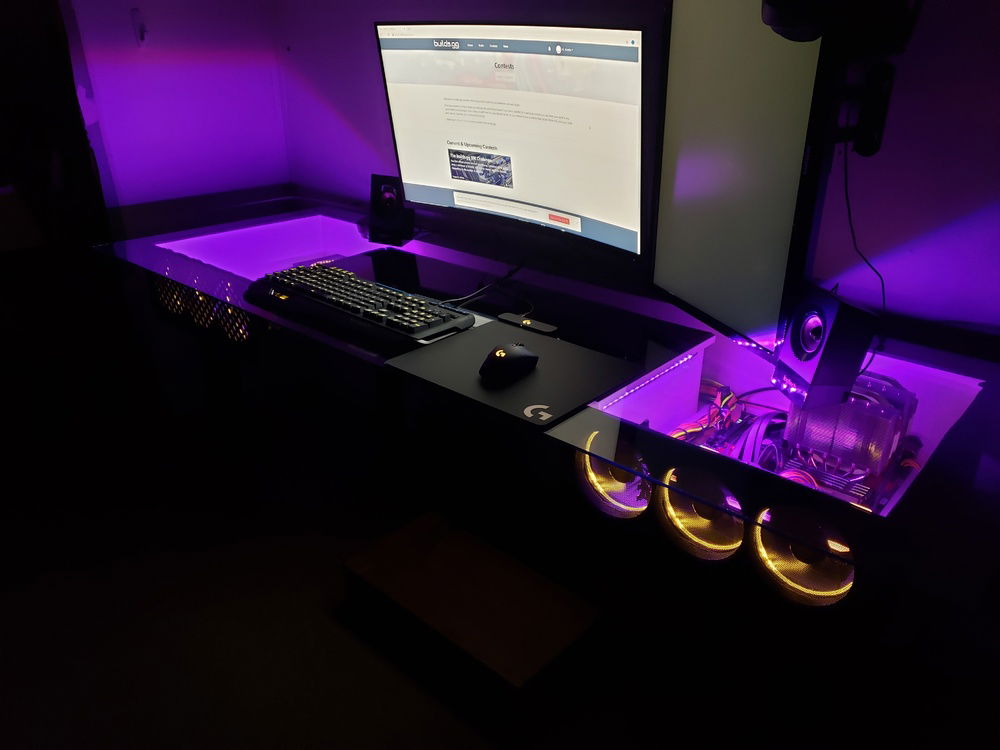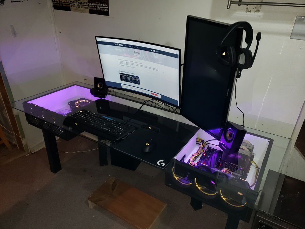 I originally built this PC back in 2015-2016 timeframe and have added/changed parts along the way. Mid 2018 i came across desk pc's as an idea and i loved it! I wanted to build my own to enjoy so i did. My last upgrade has been the 1080ti which i bought right after the new RTX launch. I did all the woodwork and assembly of the desk as well as added a 3d printed touch for exhaust air! I'd love to build a new pc and accompanying desk when the new AMD cpu's launch!