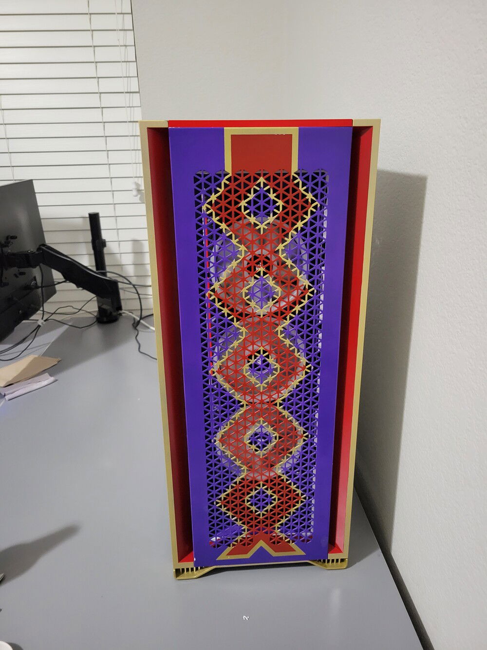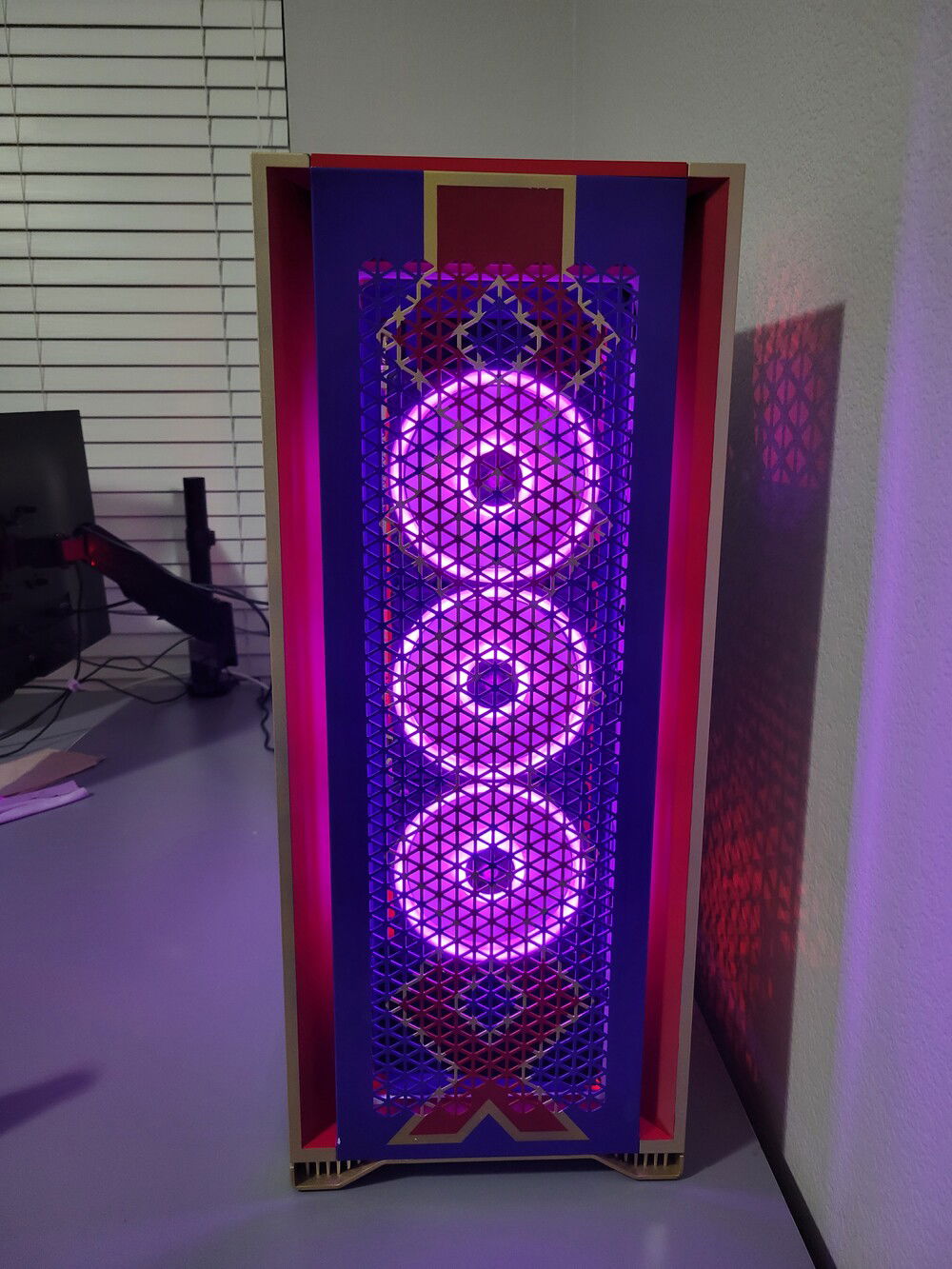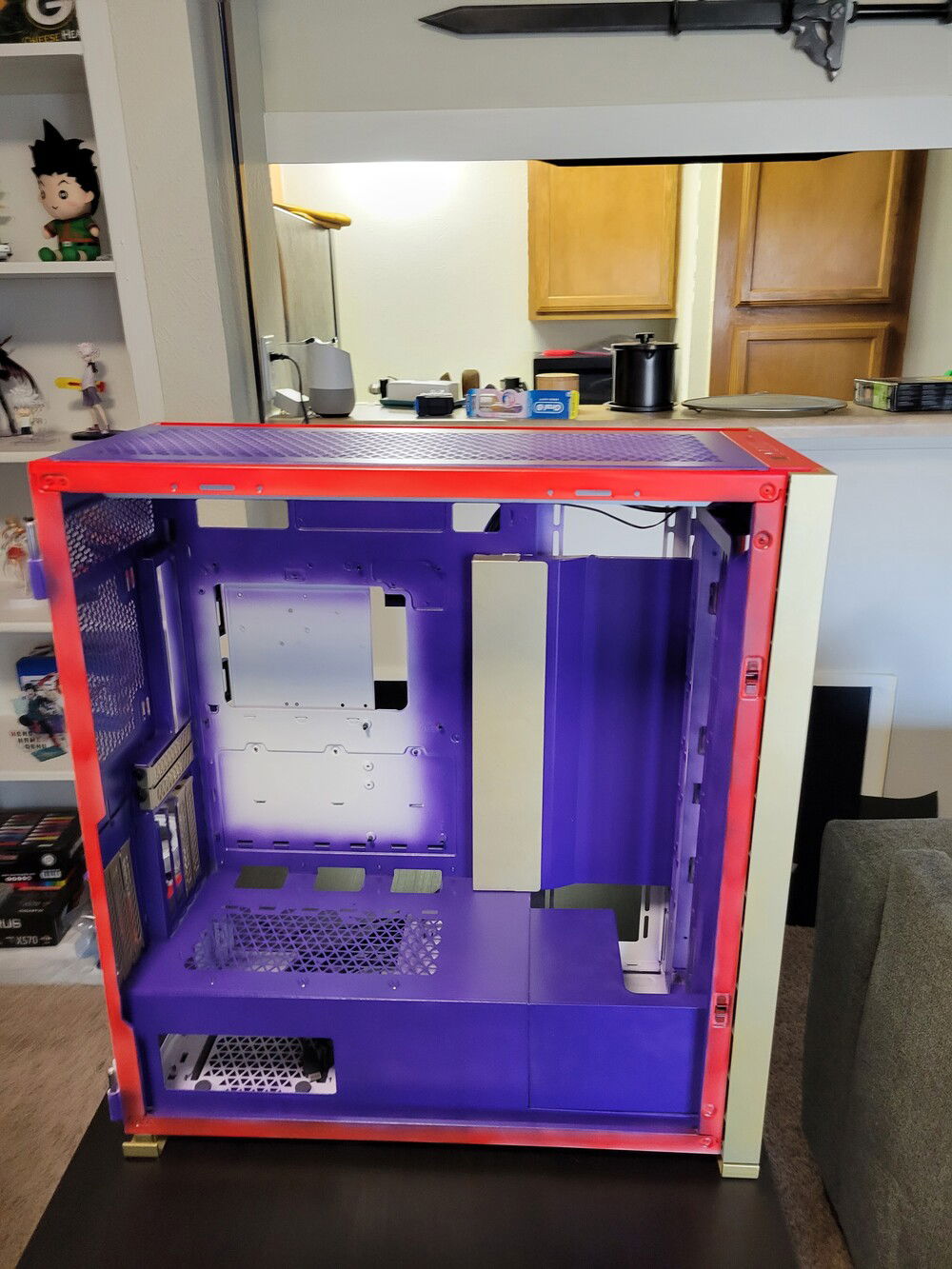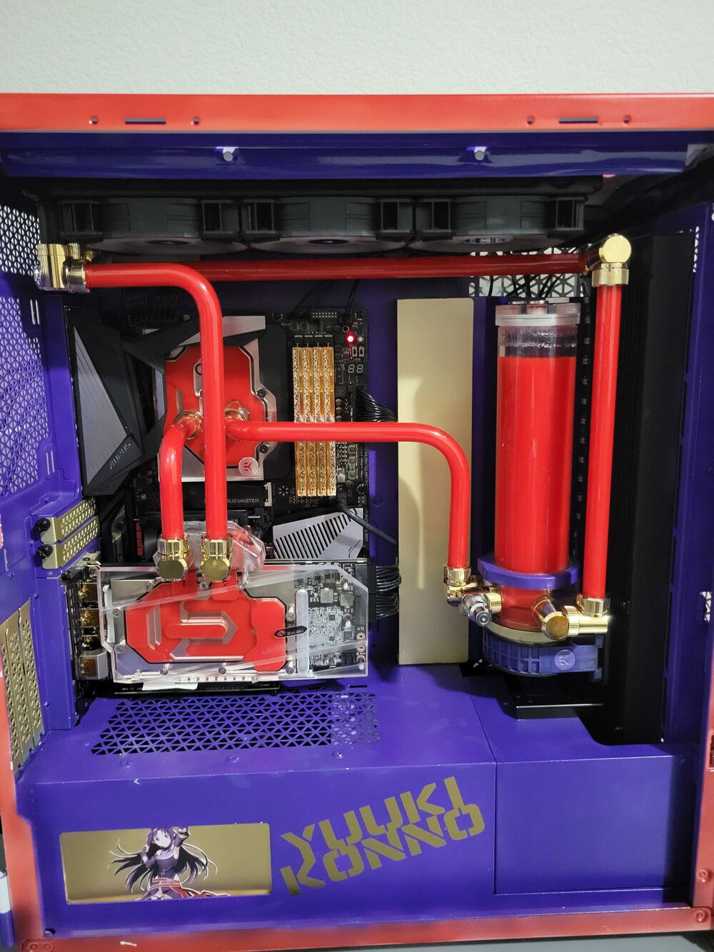 This is my third custom liquid cooled PC and my second custom painted case. The case started as a white Corsair 7000D Airflow. The theme is based off the character Konno Yuuki from SAO. Purple and Red are the 2 primary colors used along with gold accents. The primary goal of this build was to test my painting abilities. I have a more ambitious build idea but I wanted to test the limits of my painting skills as well as the paint I had. In the end I surprised myself with how the paint job came out but I am also disappointed in how fragile the paint is. Even with 4 layers of clear, it still chips off very easily. I did not use a self etching primer as I thought the rough metal surface of the case would provide enough for the paint to stick to but I might test using a primer next time.