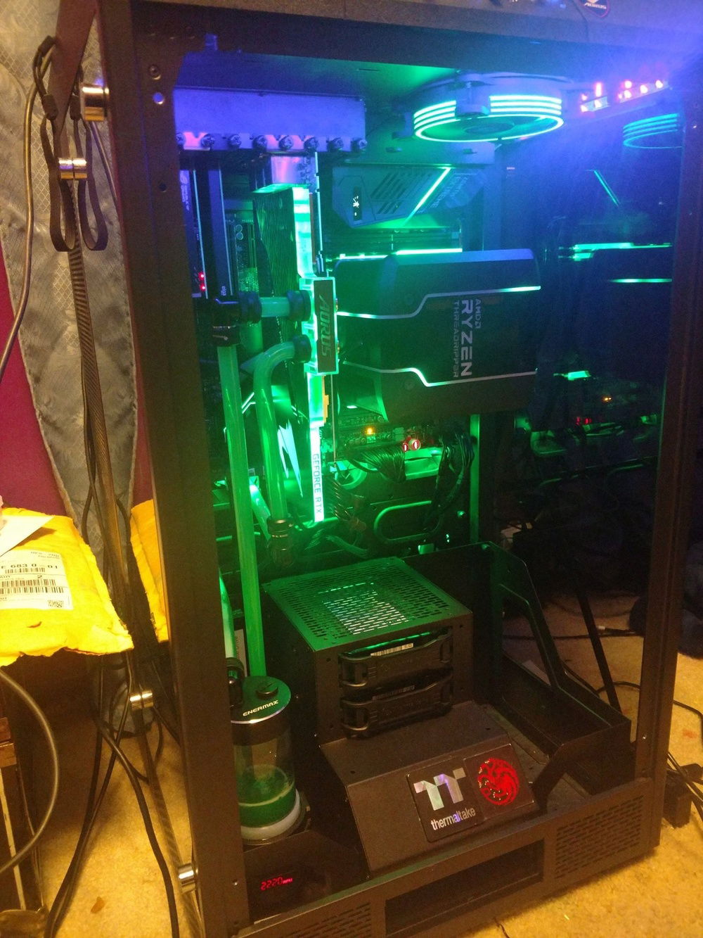 The build isn't finished but I have run out of funds for now, the reservoir light died, I spilled liquid so I do not have enough, and tubing isn't straight and needs to be fixed, and at some point it will be.