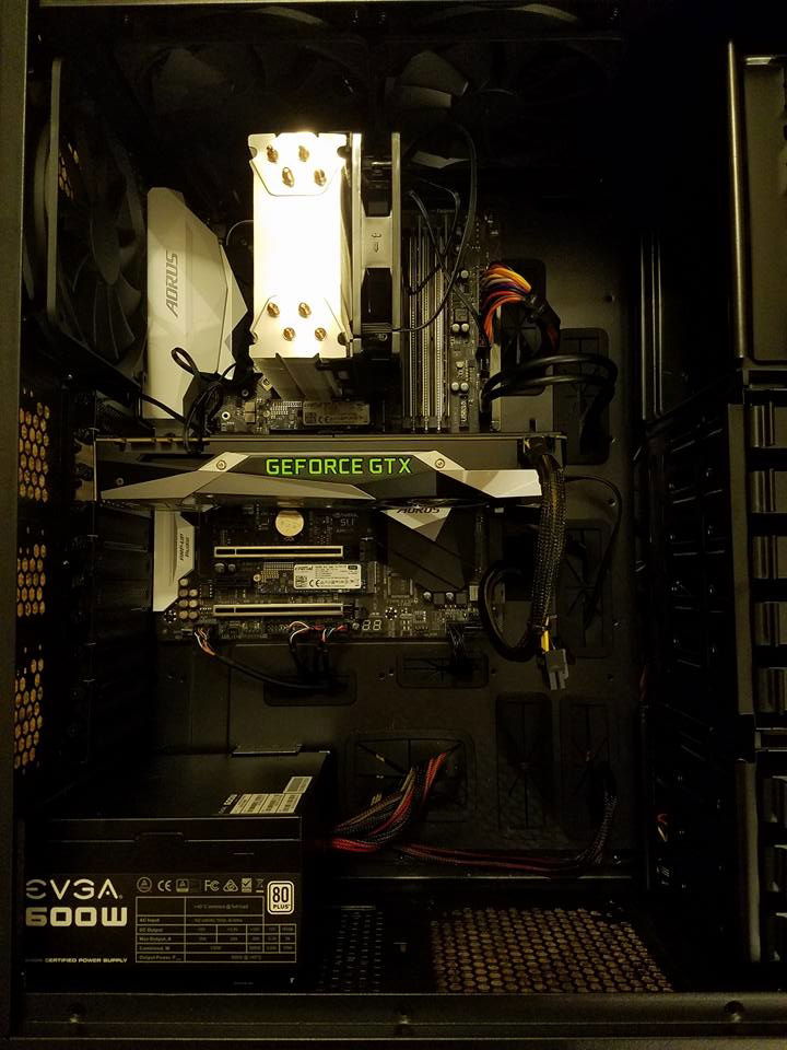 This is the first build that I have ever done by myself. I had a few problems getting going but eventually figured it out. I also have a 34in ultrawide LG that I don't know the exact model of. I've got it set to dual boot Windows 10 and Kali Linux. Not to make anyone panic but I forgot to put my standoff screws in it when I was first building it. Luckily, I caught that mistake before it went too far.