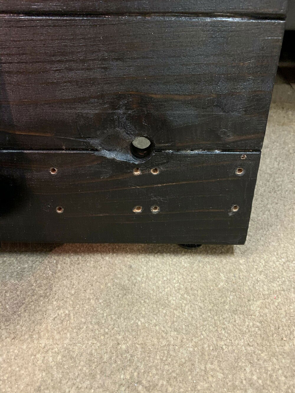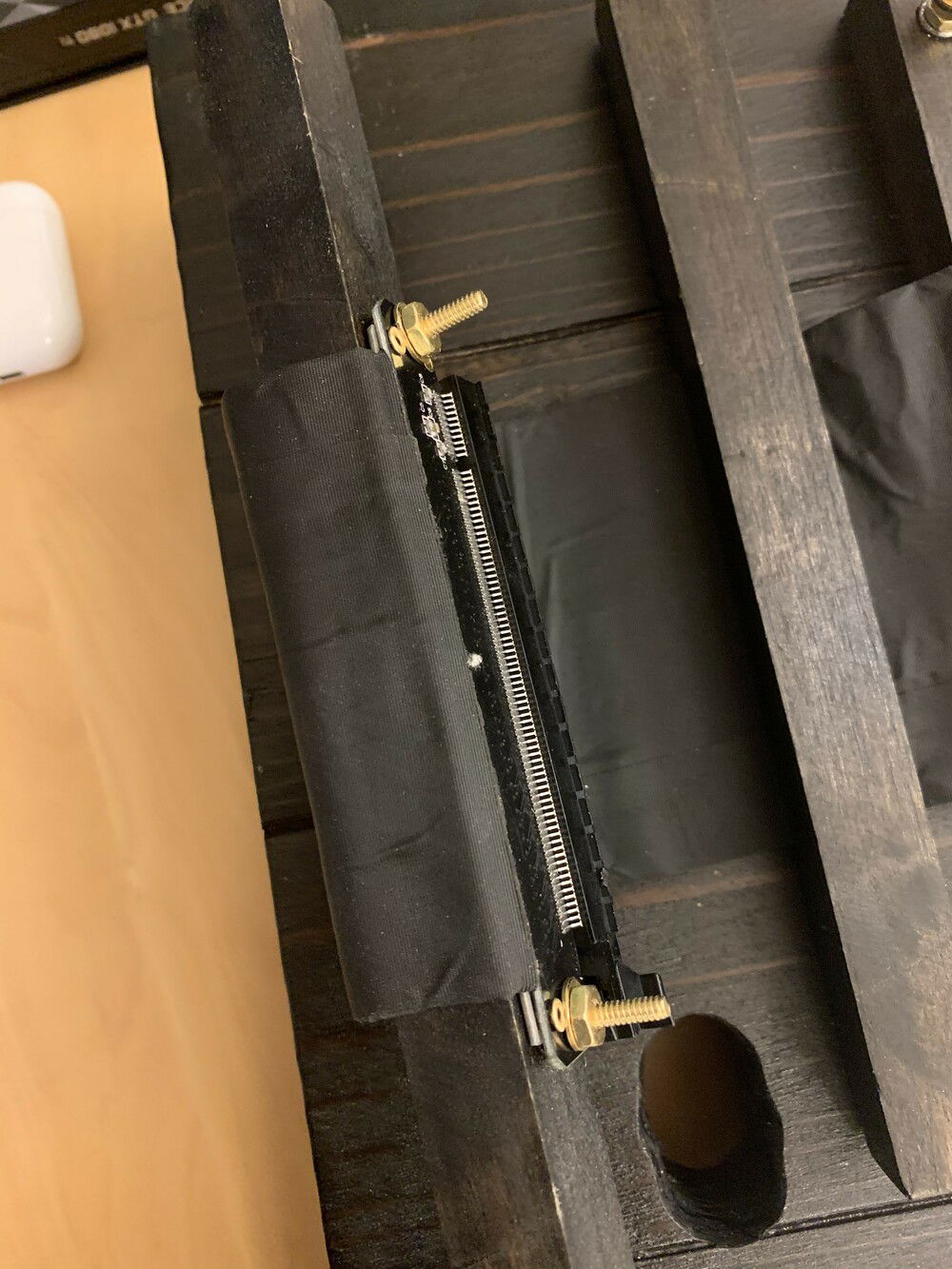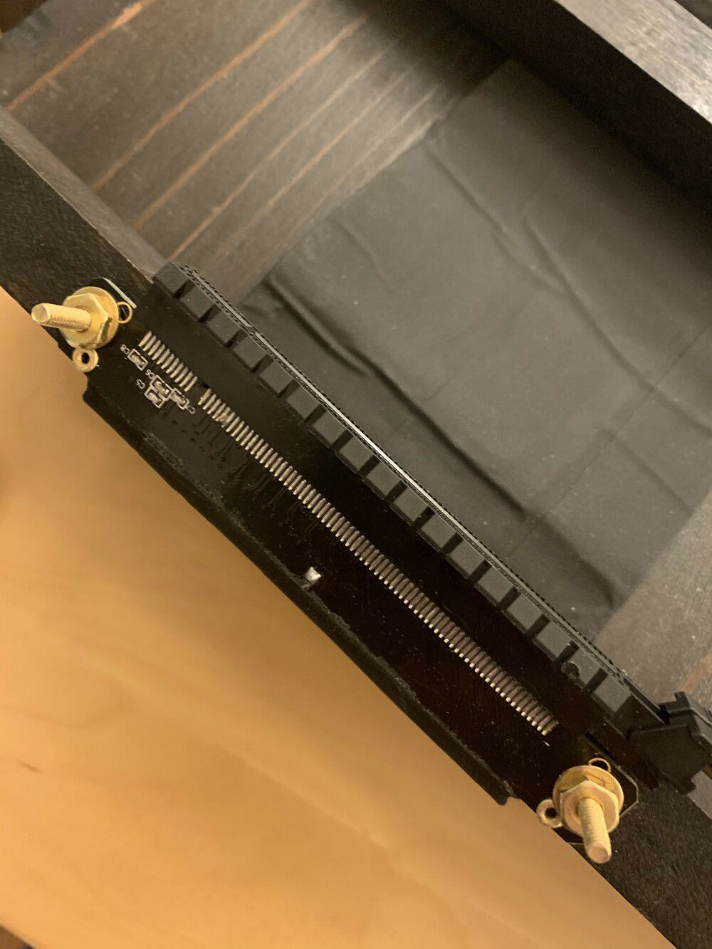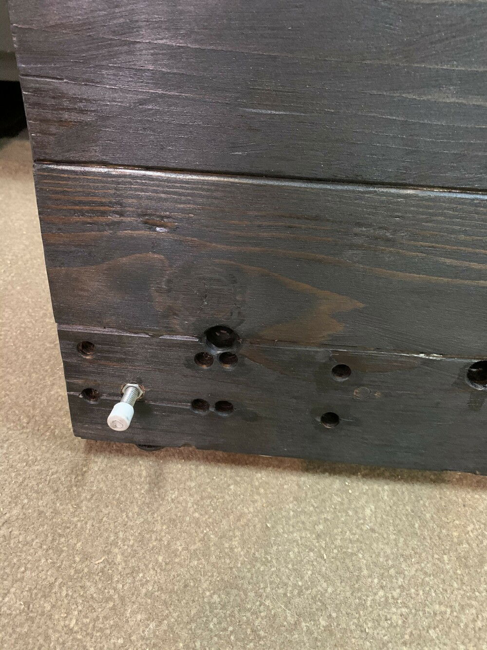 The case is solid 2x4 left over from home projects. Used wood glue and long bolts to press them together and used a belt sander to level it after the wood warped a little. Made my motherboard stand offs with brass screws and nuts. I think I could have done a better job with cable management in the back perhaps cut cable channels into the back or the wood and integrate the tubes more into the wood case