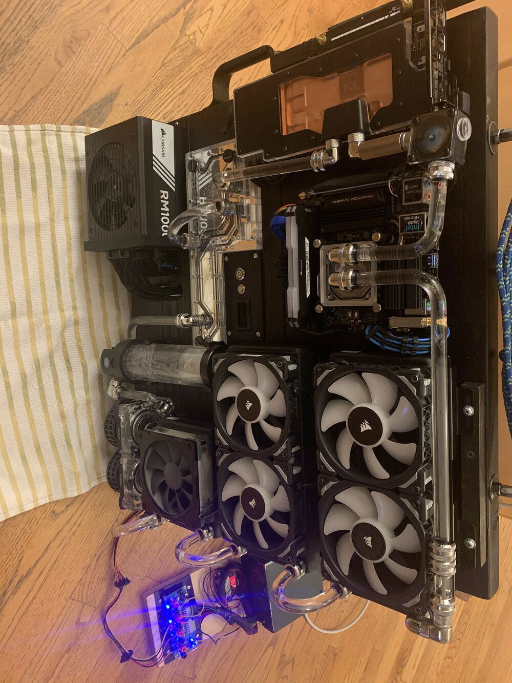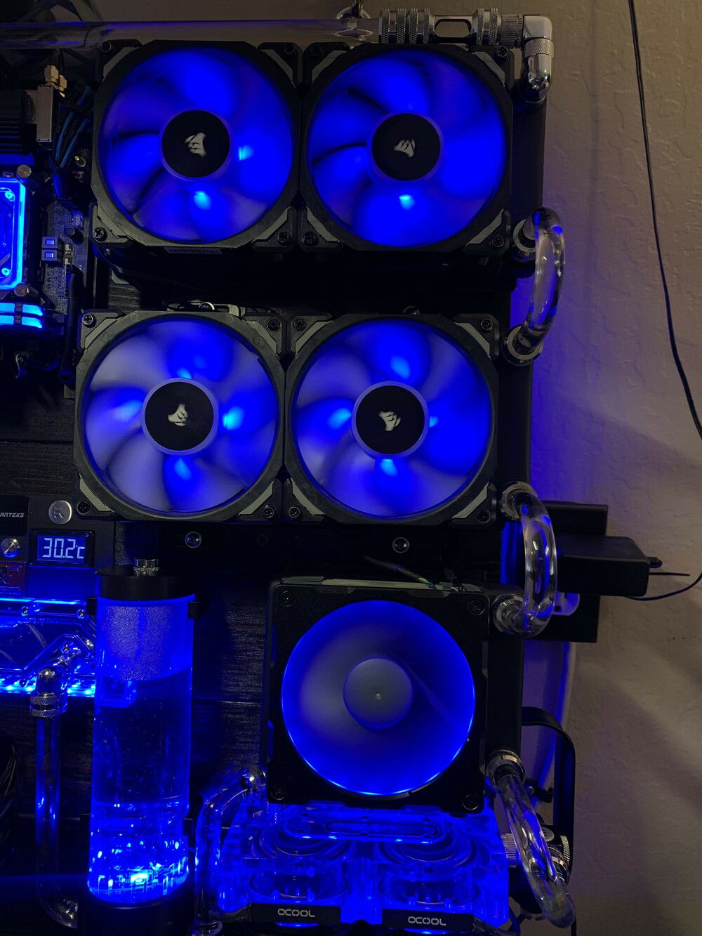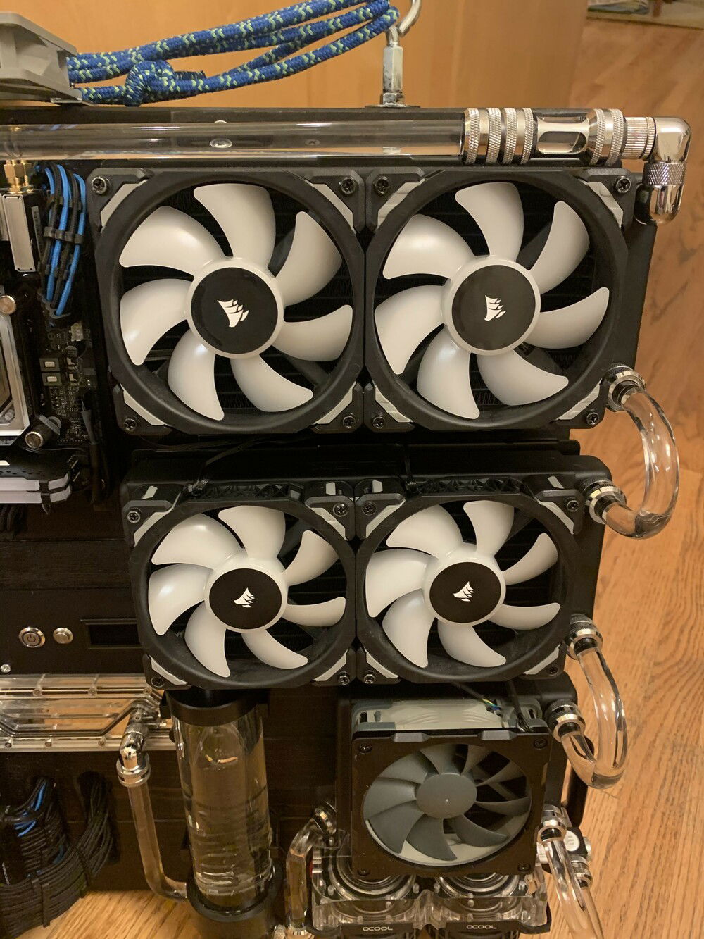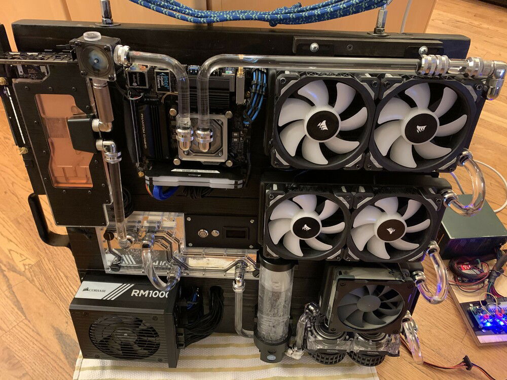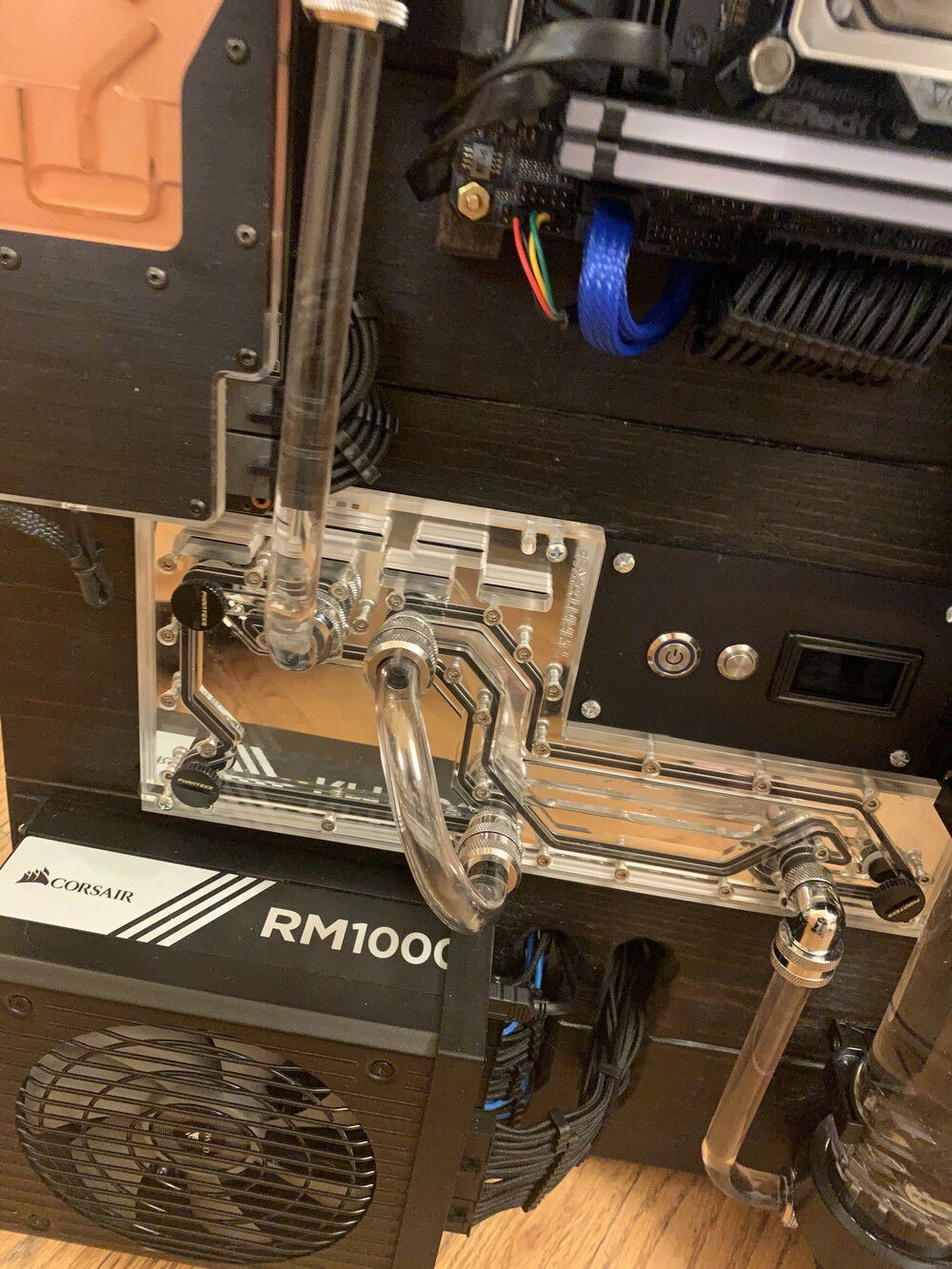 Wanted to try my hand at a custom wood wall case with full custom hard tube. The cooling is definitely overkill. Wanted to overclock and keep everything whisper quiet. This build definitely did that.