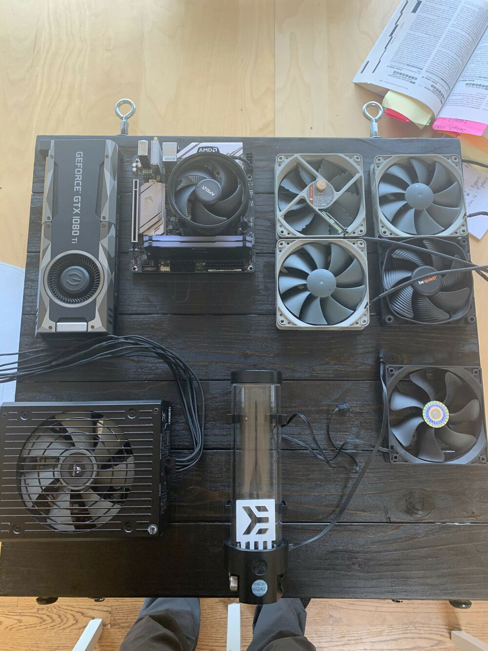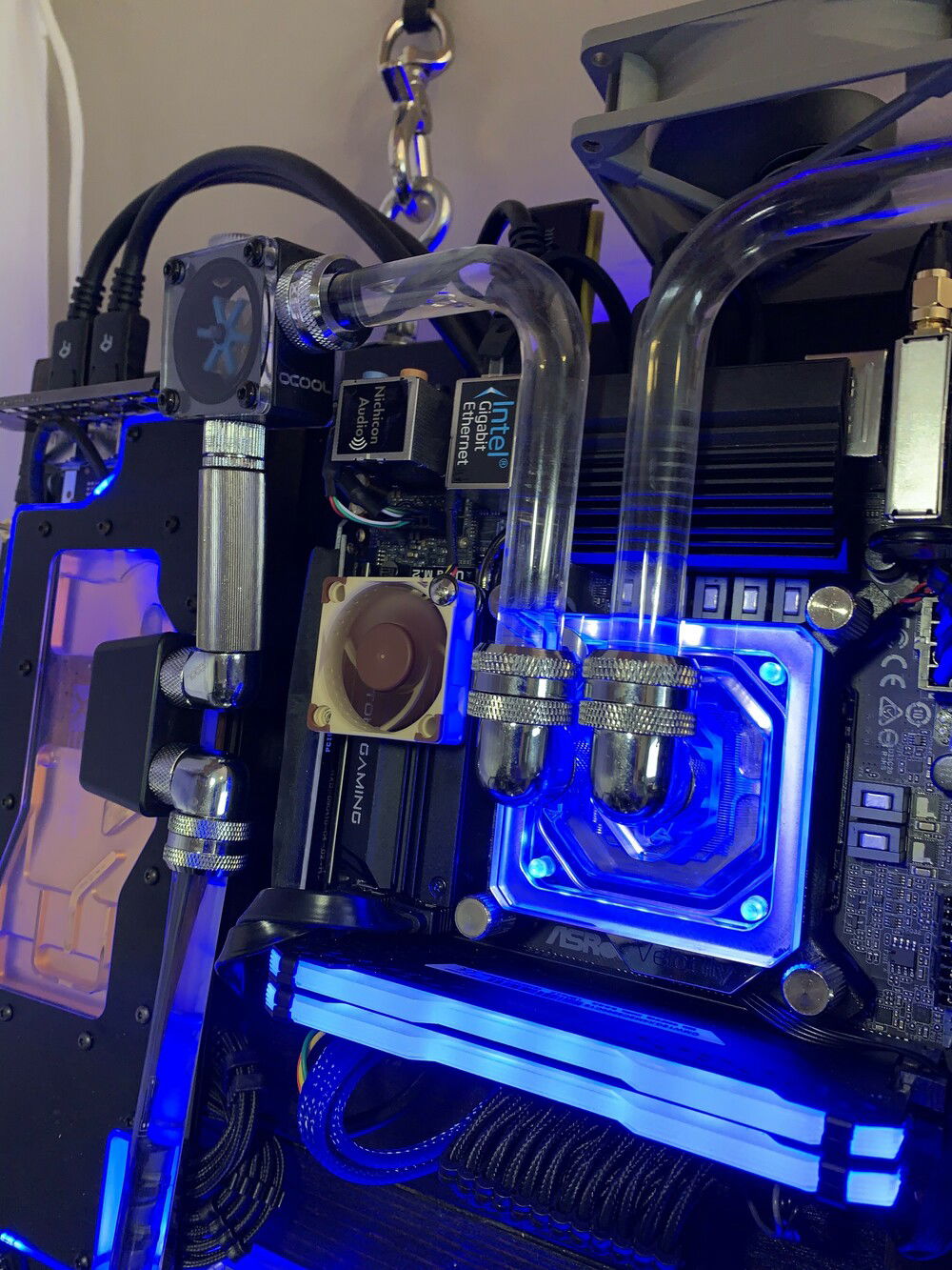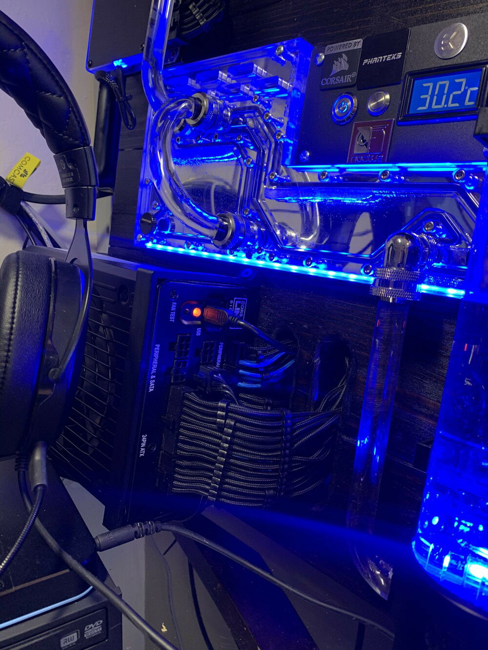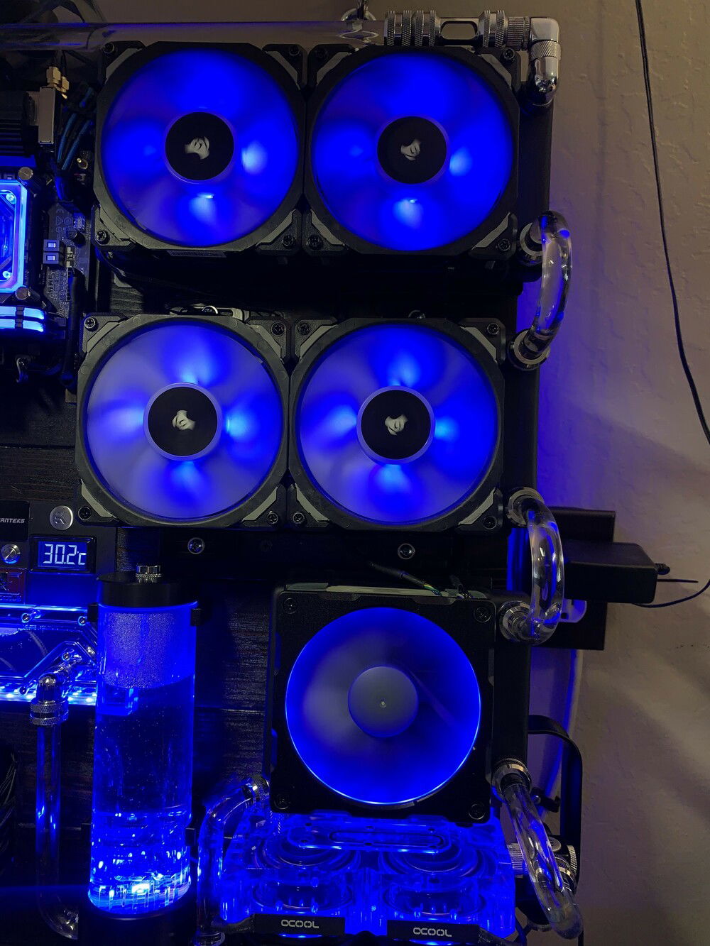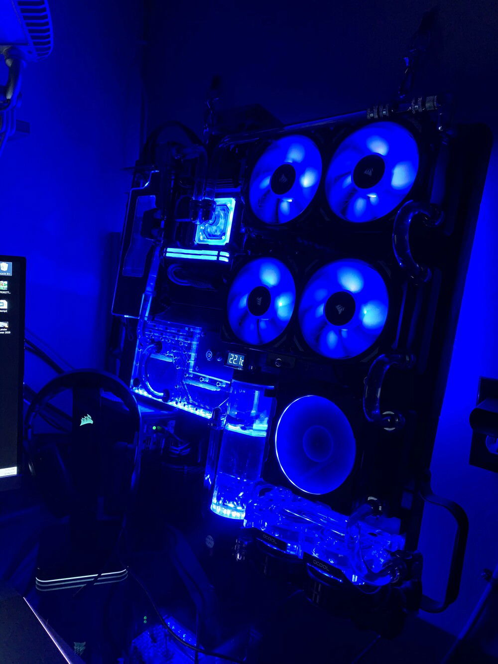 Wanted to try my hand at a custom wood wall case with full custom hard tube. The cooling is definitely overkill. Wanted to overclock and keep everything whisper quiet. This build definitely did that.