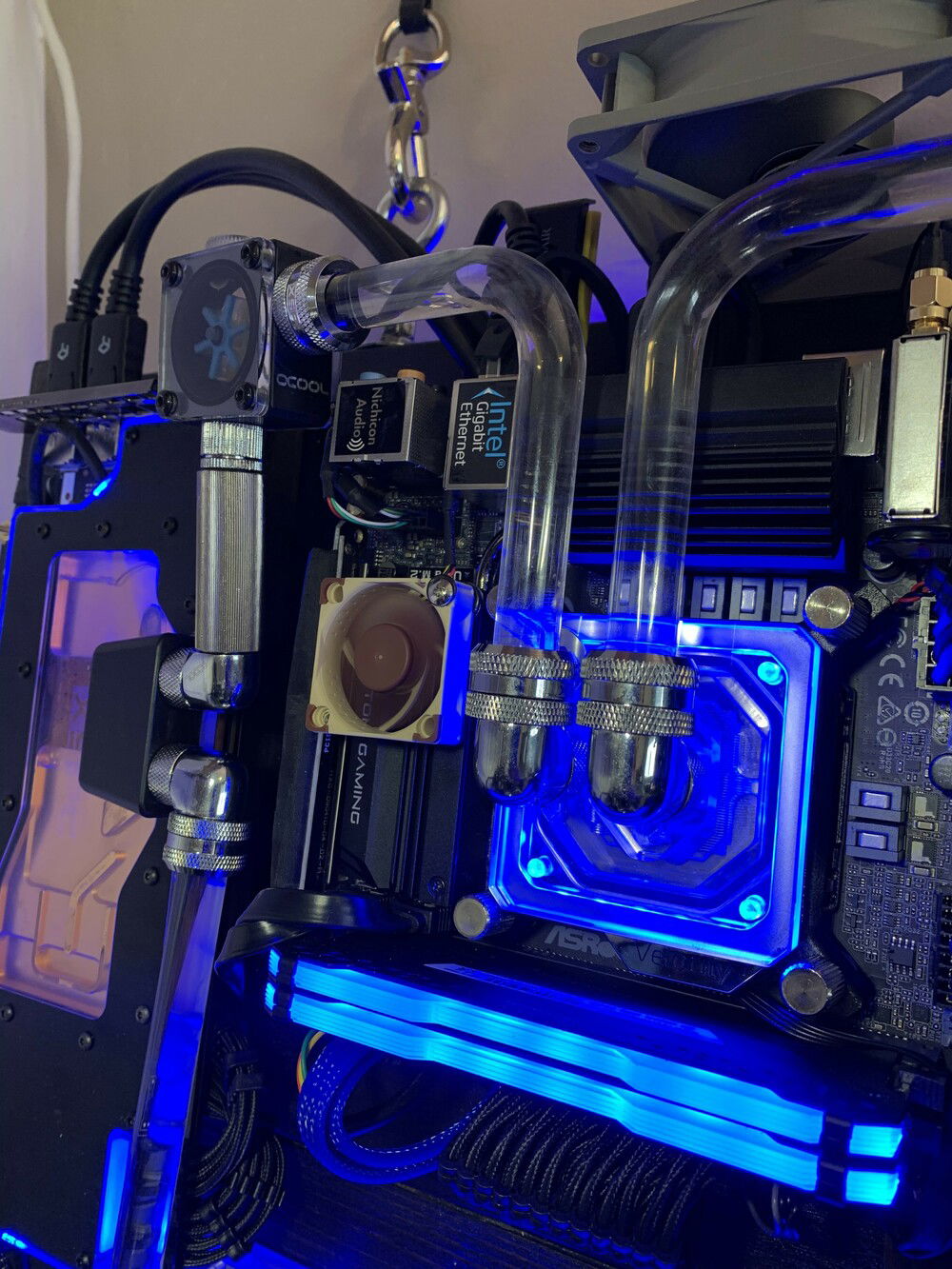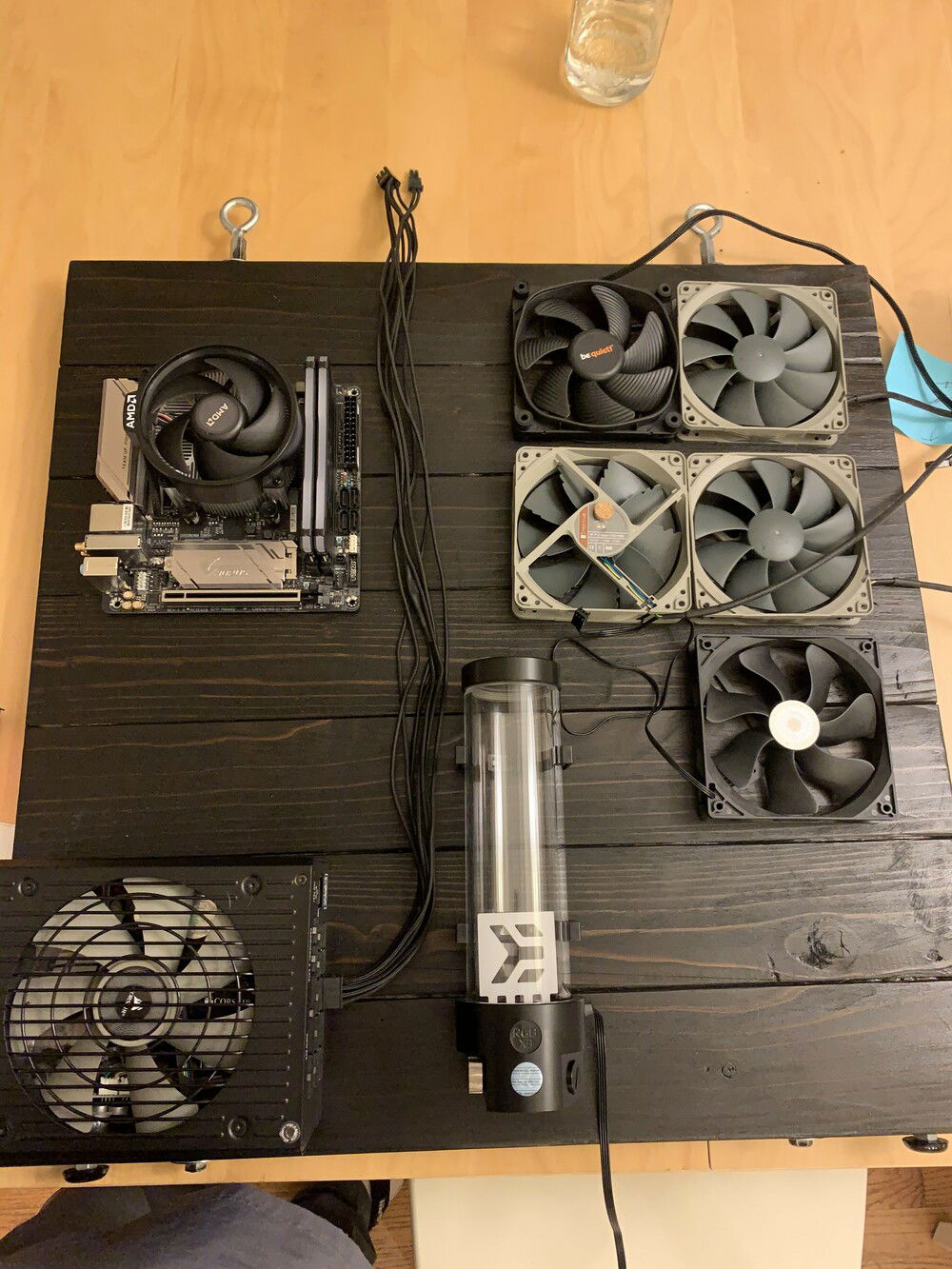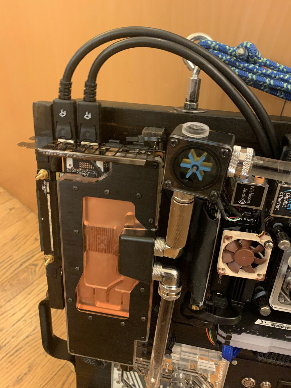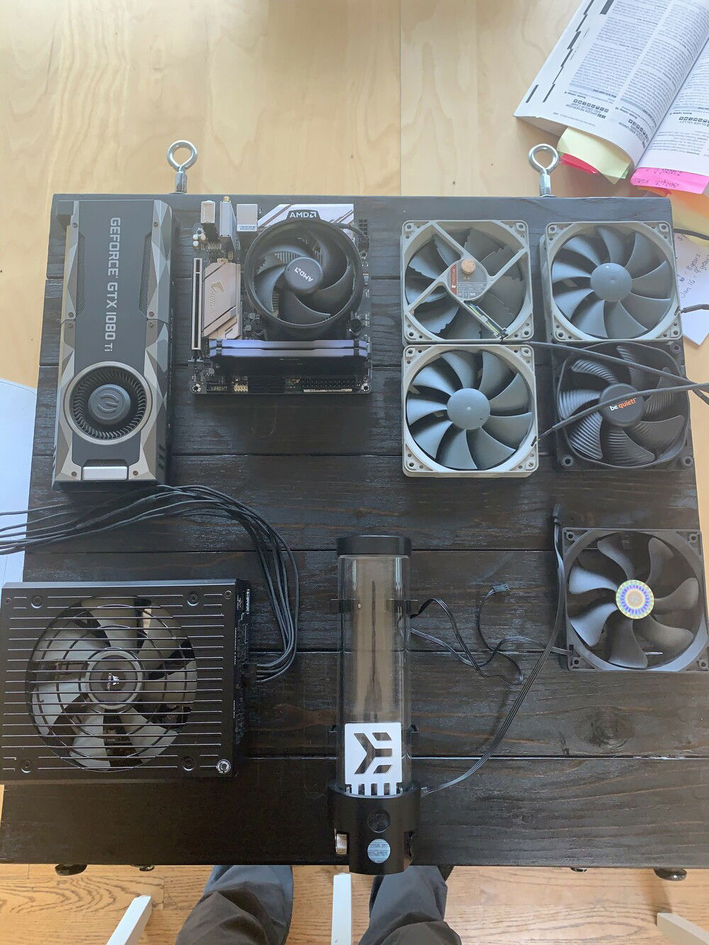 Wanted to try my hand at a custom wood wall case with full custom hard tube. The cooling is definitely overkill. Wanted to overclock and keep everything whisper quiet. This build definitely did that.