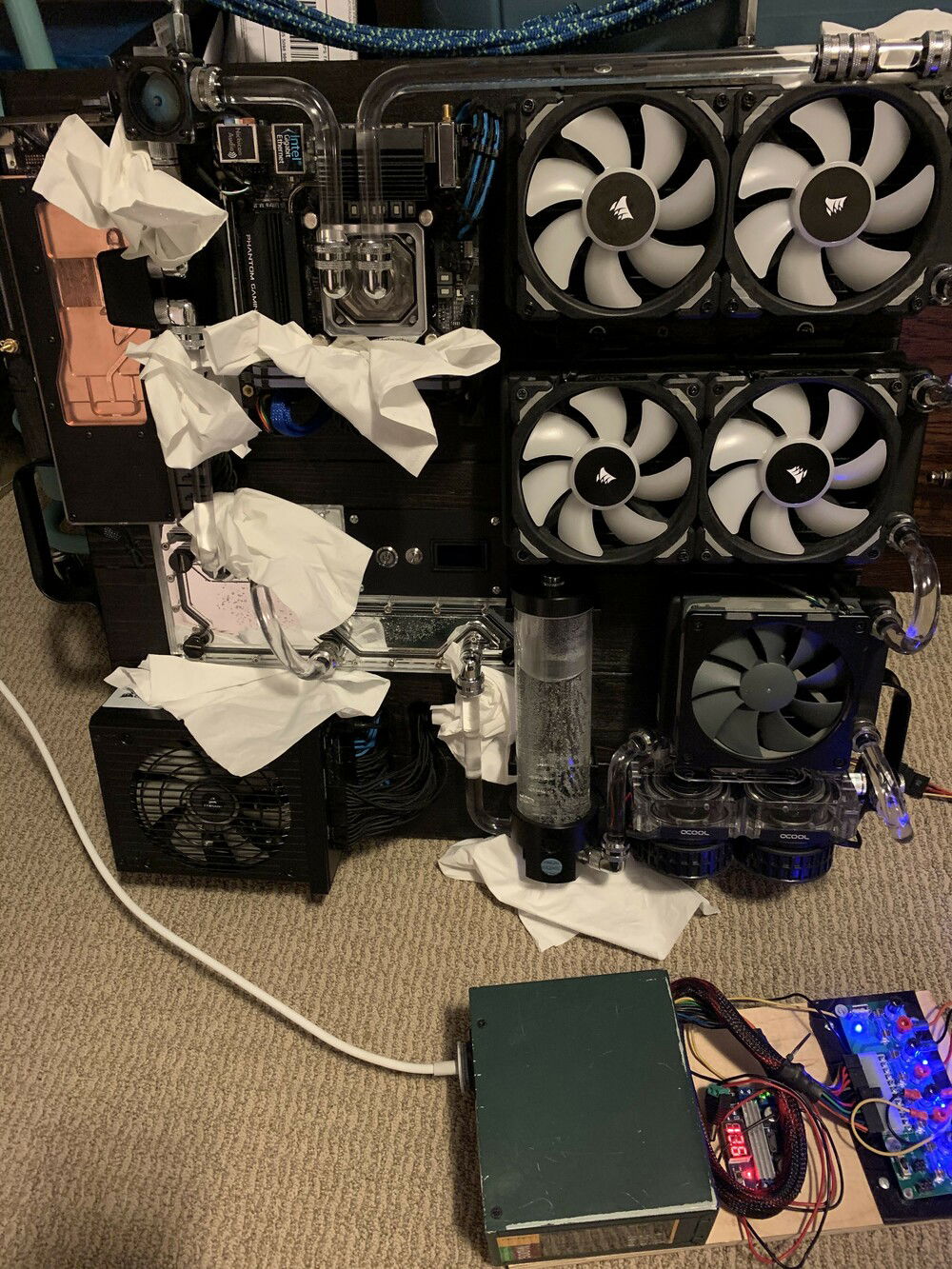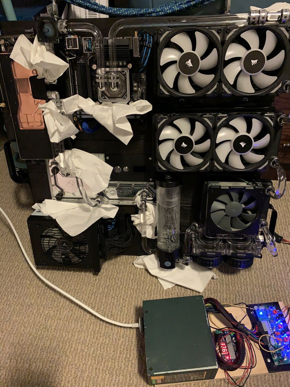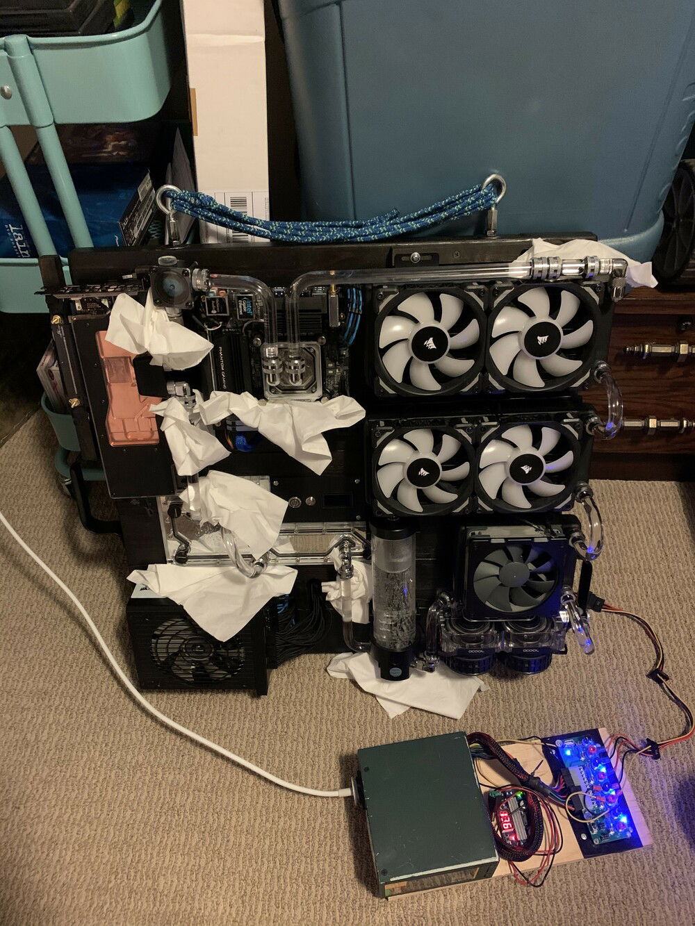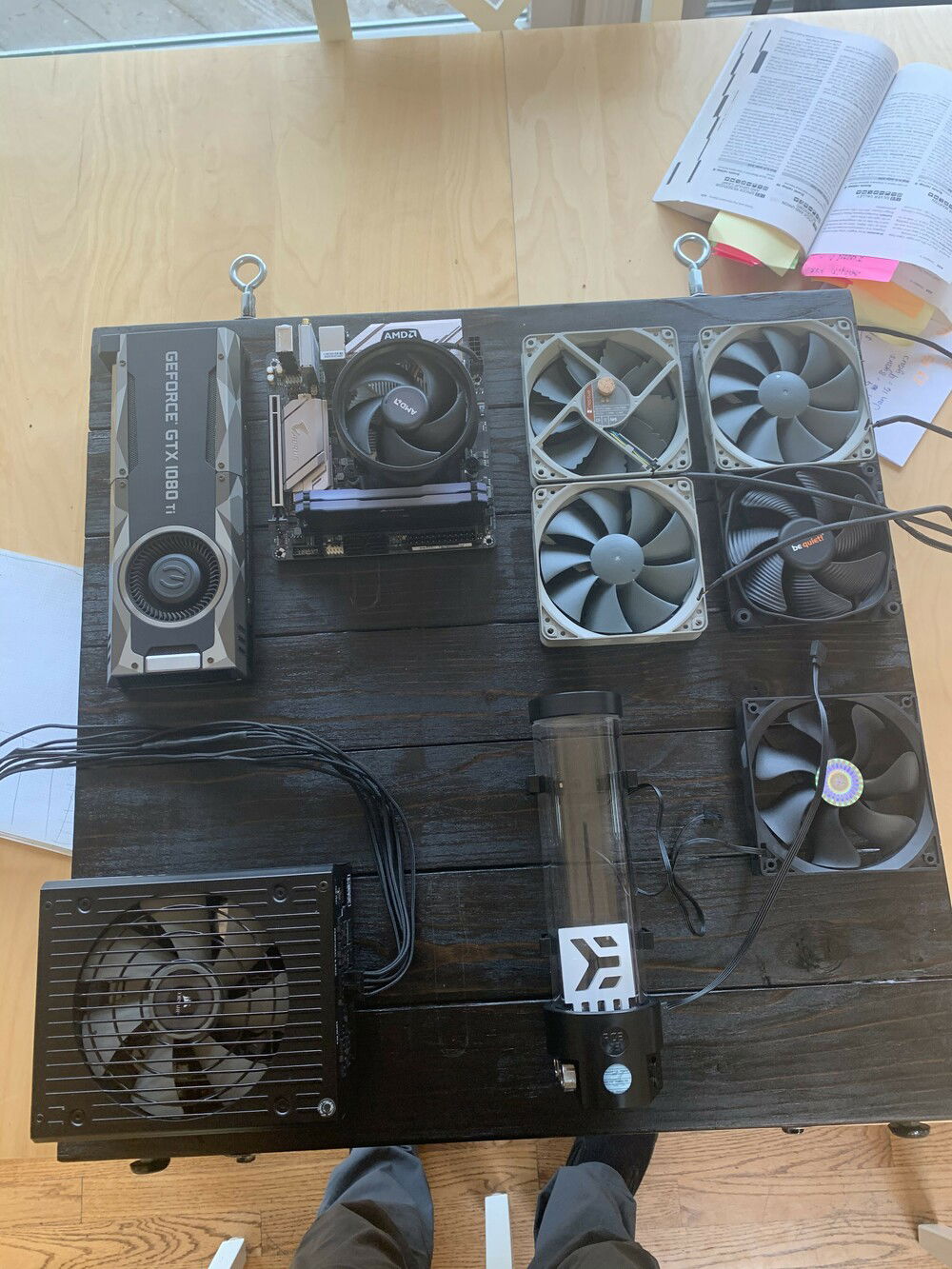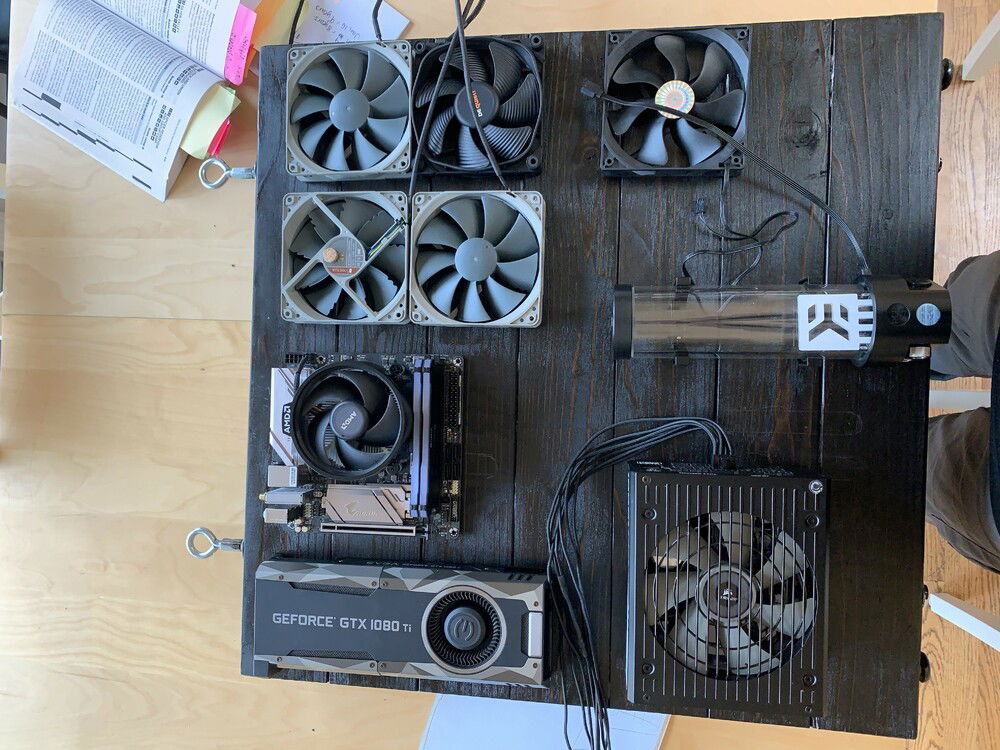 Wanted to try my hand at a custom wood wall case with full custom hard tube. The cooling is definitely overkill. Wanted to overclock and keep everything whisper quiet. This build definitely did that.