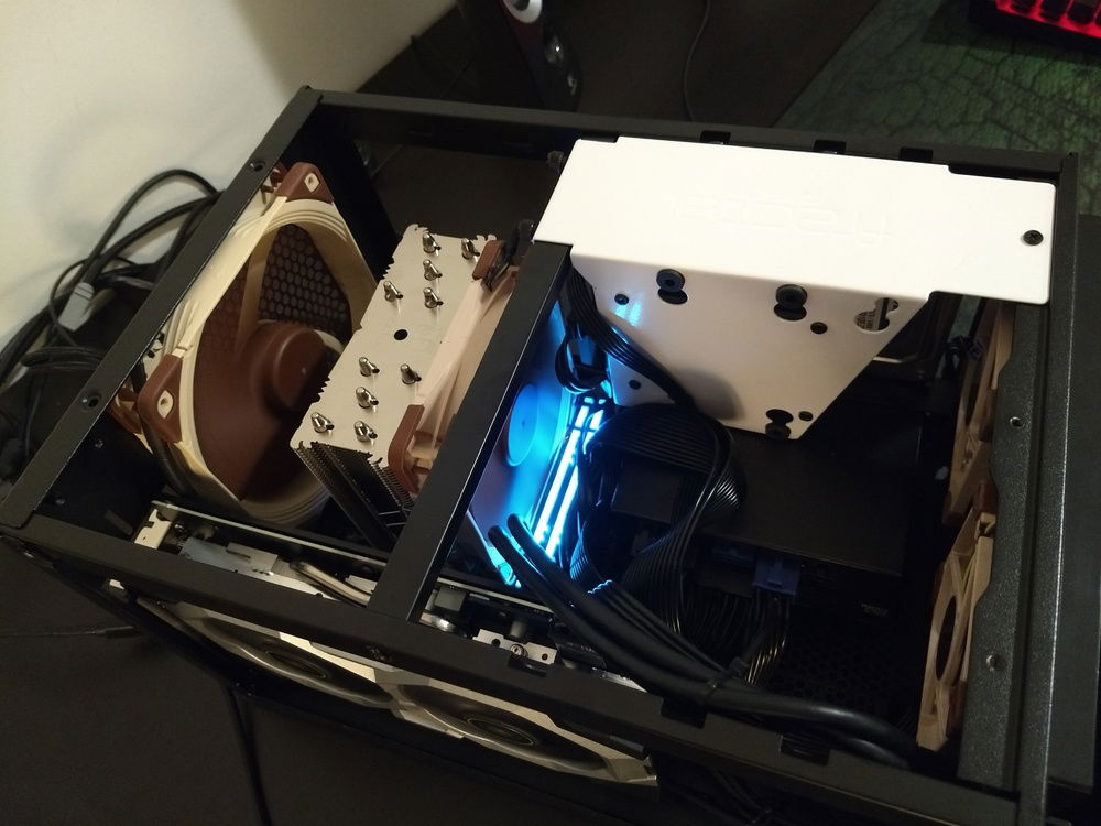 In the end, the cable management is not the greatest, but it definitely has a smaller footprint than my old Corsair 450D .