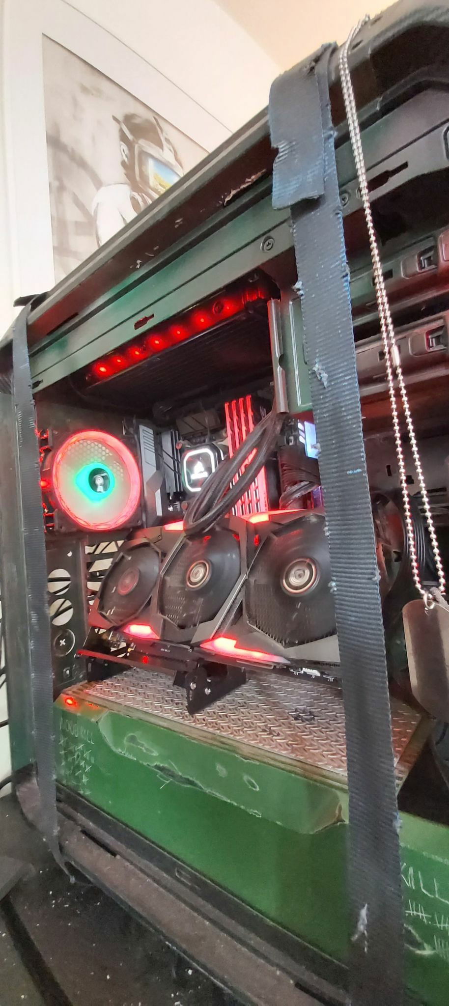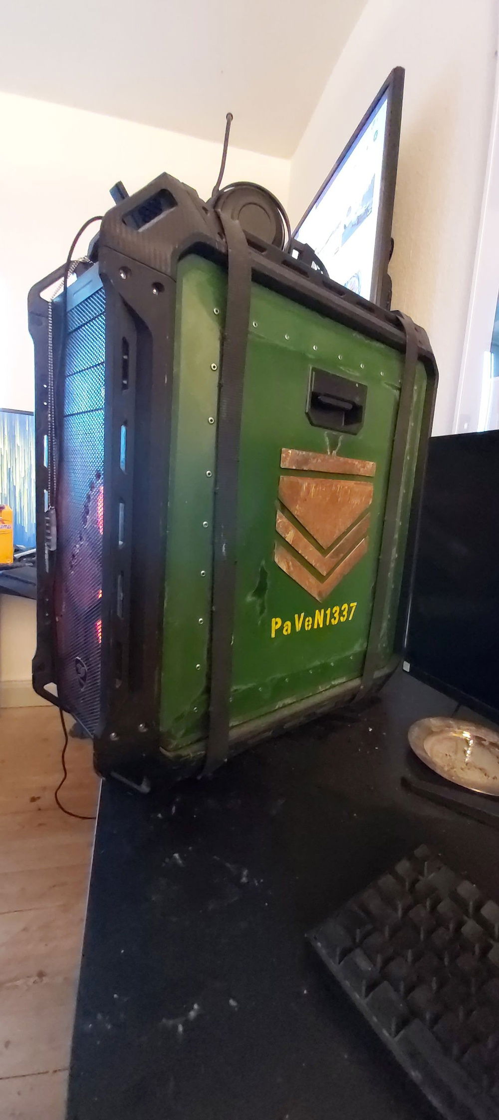 the cabinet is painted military green and there after a turn with angle grinder plus a lot of other details