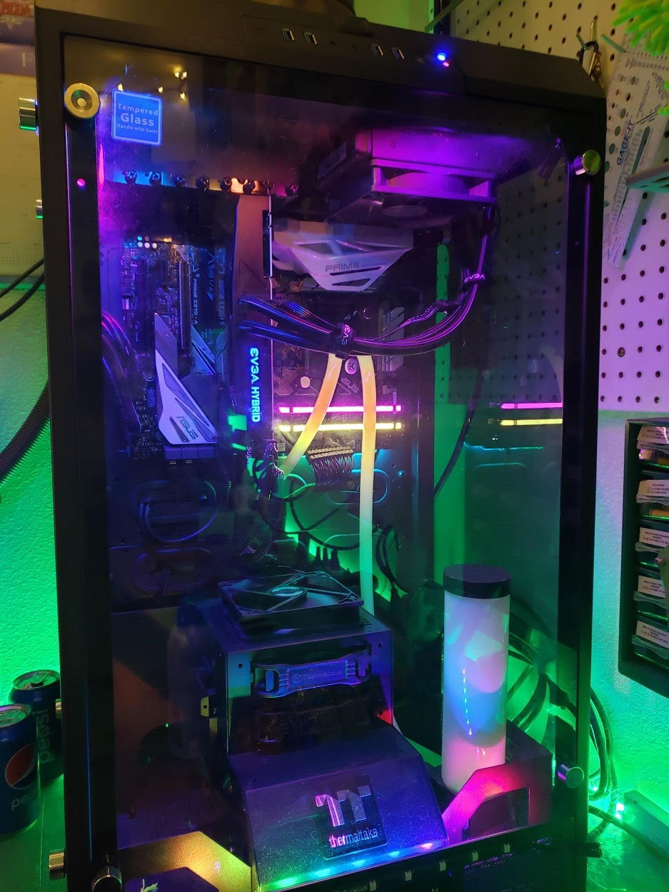 The 6 inch duct fan is used to pull air out of the tower and is venting outside though the roof allowing me to overclock my EVGA RTX 3080 hybrid to 2600mhz,50c at max load.