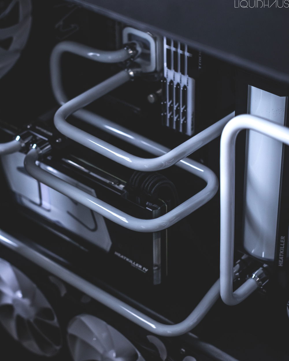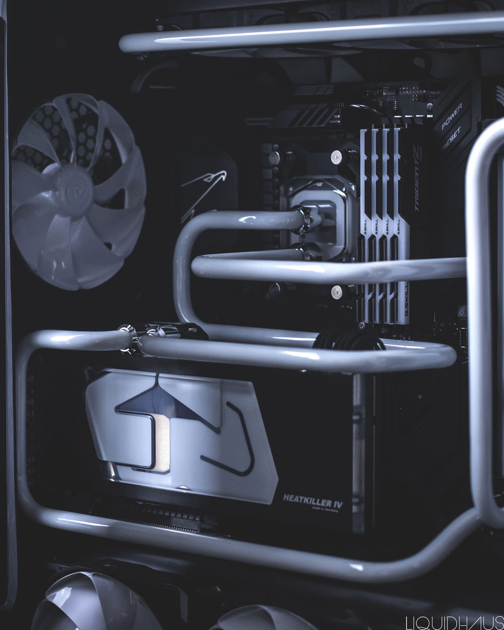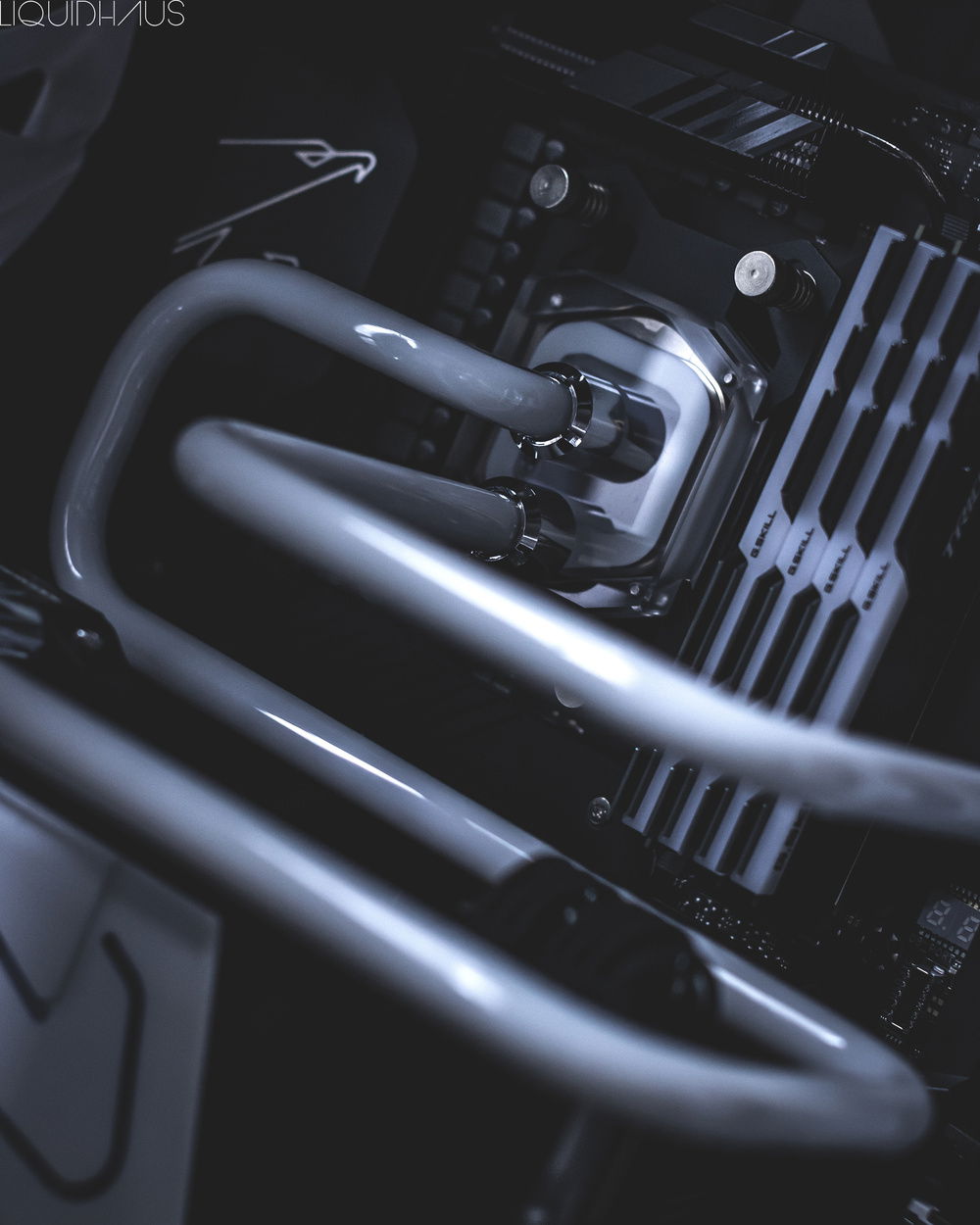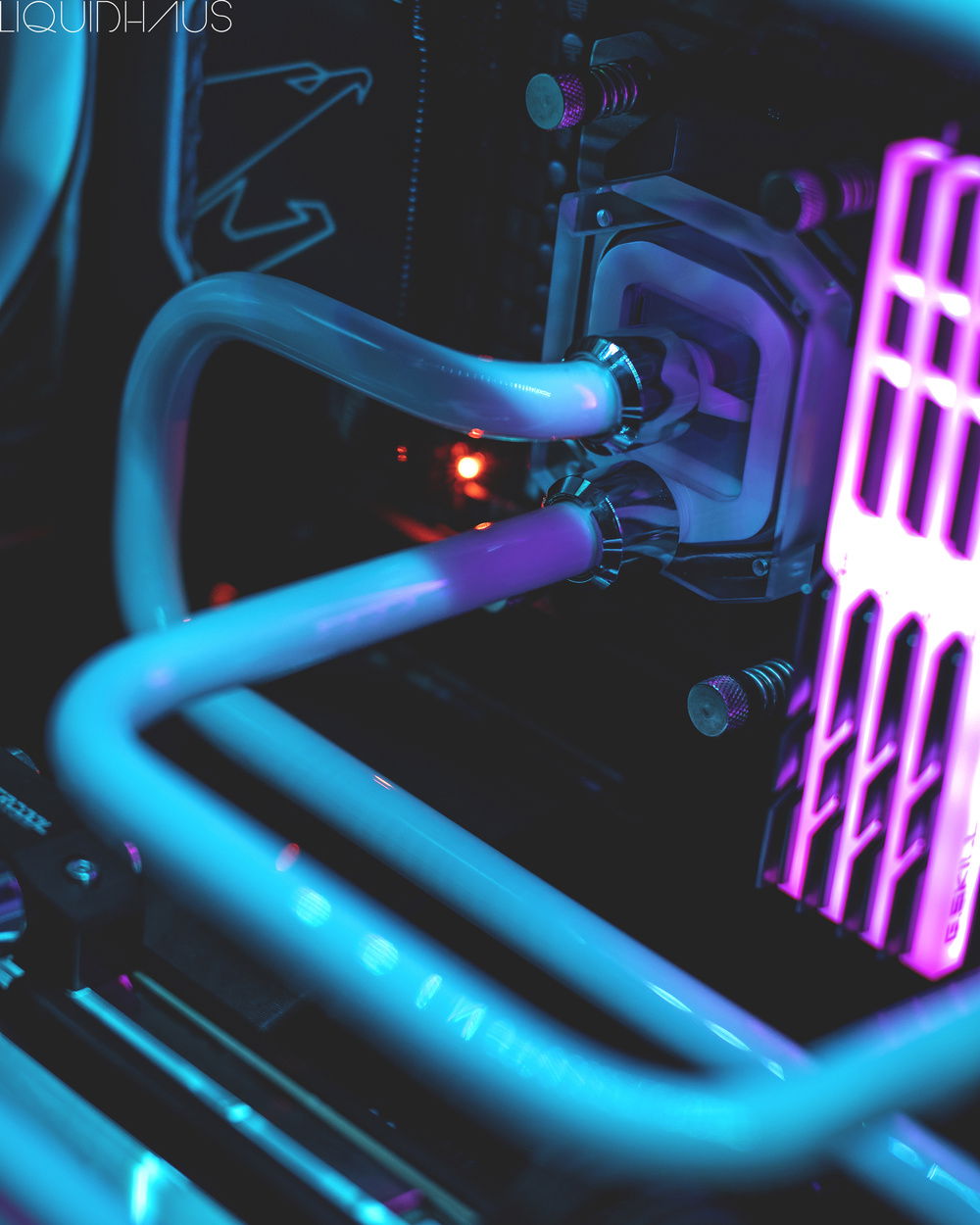 Flagship rig of LiquidHaus. This is the 10th iteration of this build, meaning the parts installed now were funded by selling the parts that had been installed prior. This build has evolved as hardware has progressed, with the initial build investment starting when Bulldozer was first launched.
