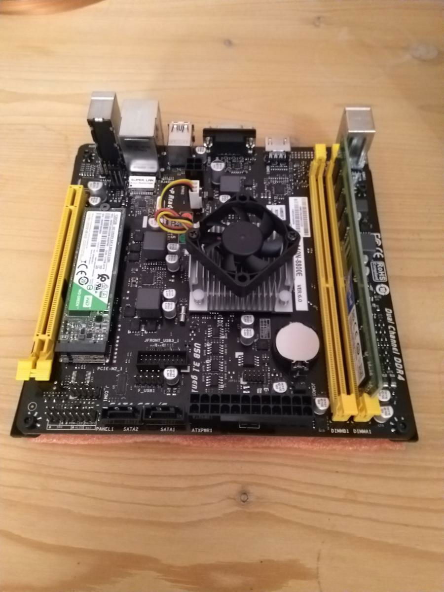 Now onto the hardware I just wanted to get something as cheap as possible and throw all my old 2.5 inch hard drives into it. I chose a fairly new board (with and older AMD Carrizo architecture) the Biostar 8800e, it has 4 cores and a low TPD it pulls about 15watts from the wall on Idle and 55watts under extreme load which it will never see in its life primarily as a NAS.