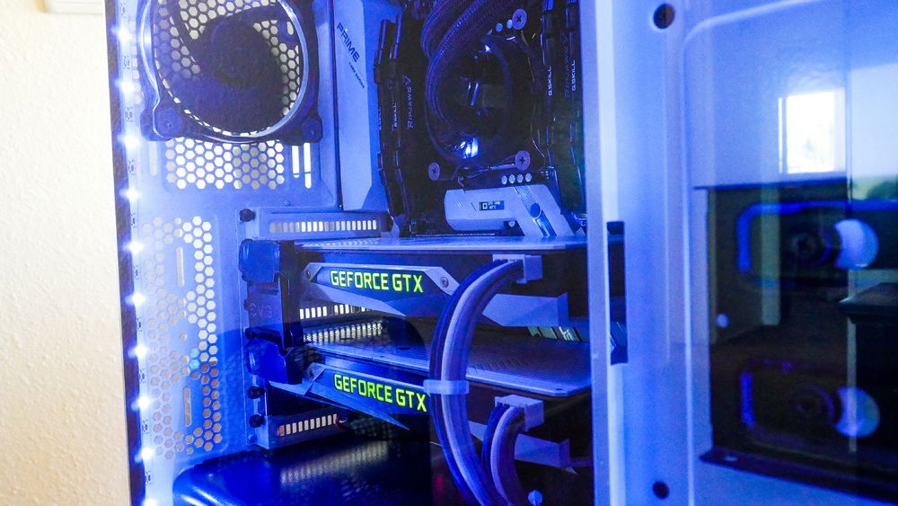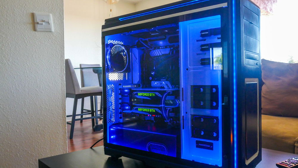 This is my baby. With the custom paint work and custom sleeved cables my heart and soul went into this build. Everything was built to go with my color scheme and I think it turned out great. Can't wait to do the next one hopefully with custom water cooling.