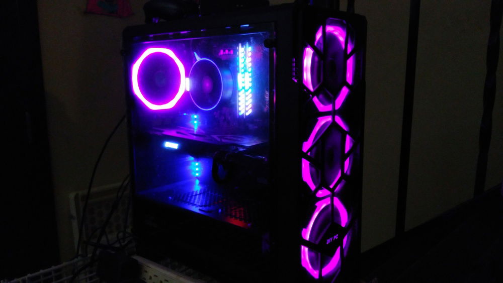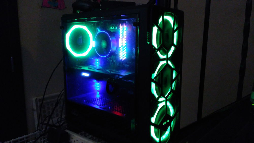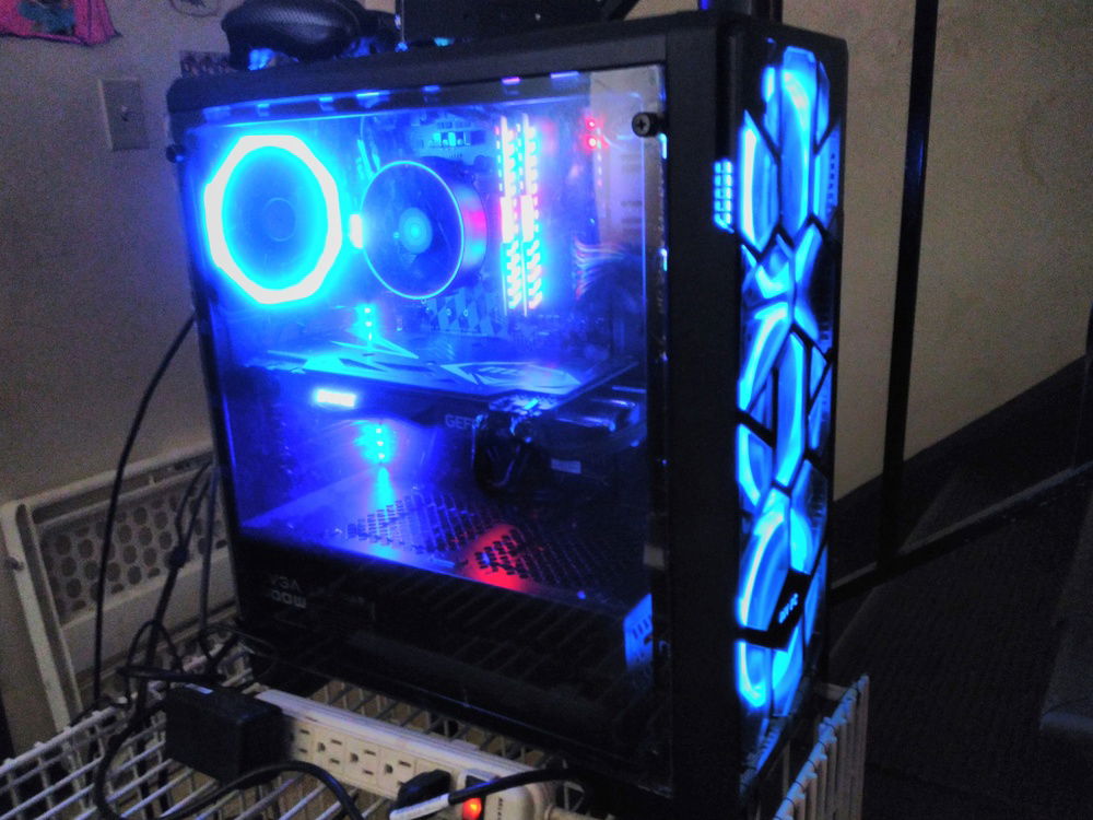 Ryzen 7 2700 MSI GTX1080 duke Biostar x370GT 16 gb ram , after market RGB coolers Sceptre 27' curve screen 75hz DIY tempered glass case Evga 600w PSU