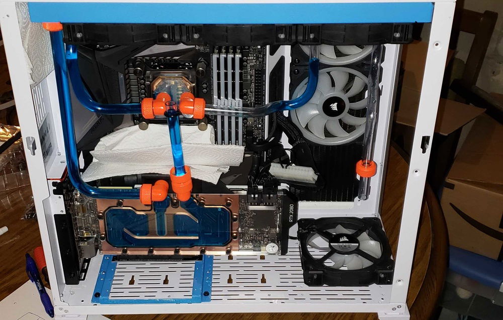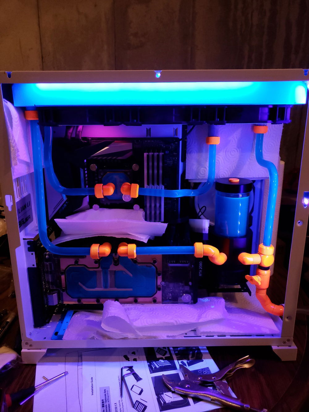 My first attempt at any hard tubing build. I know things are not perfect. But i would still like to get some feedback on how to improve my skills. The only things I wish I did different are not getting a 2080 TI and the ASUS Maximus XI Code motherboard. The BIOS on Gigabyte boards are not very good compared to ASUS UEFI.
