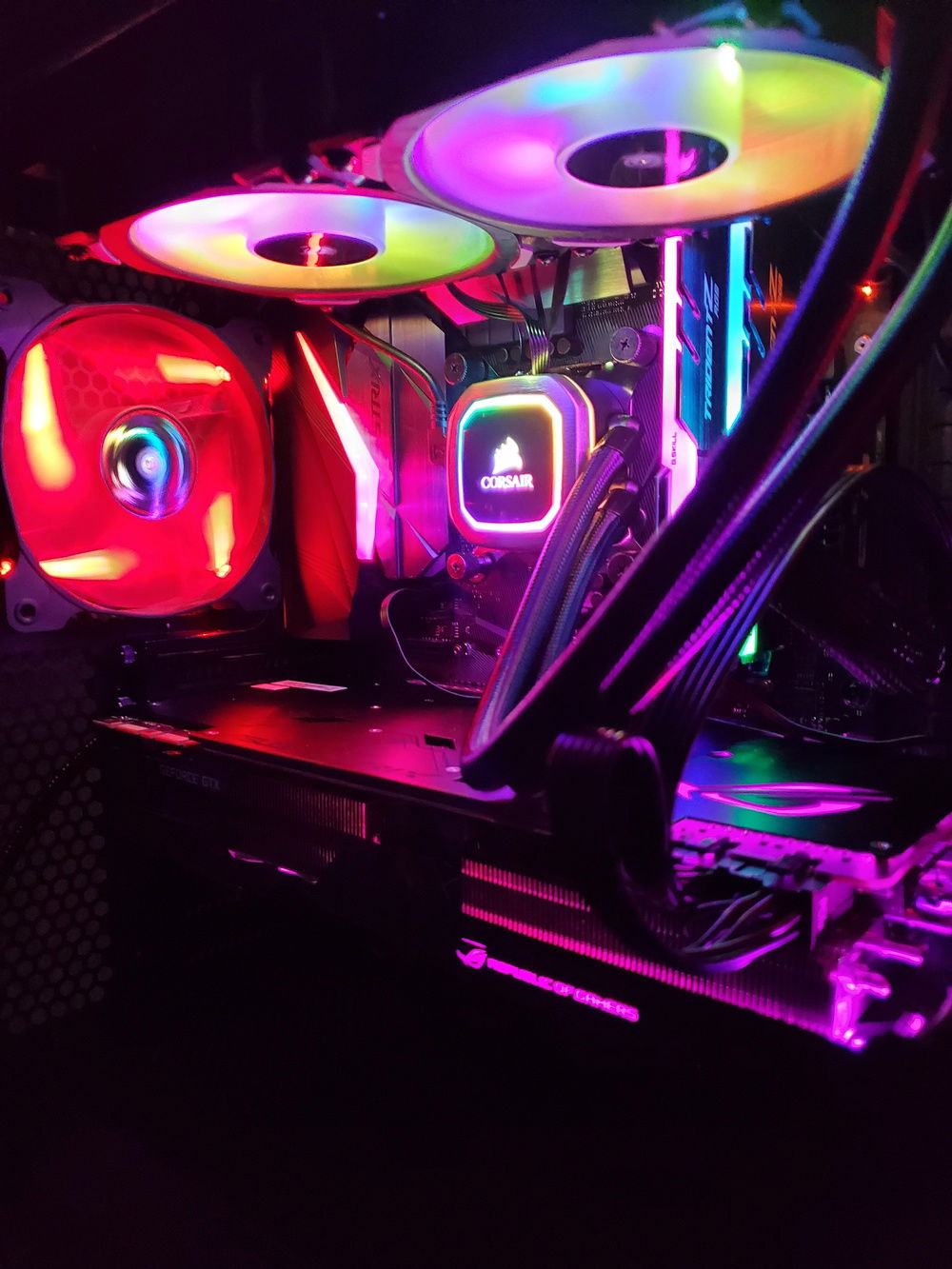 My brother's build using my old CPU and motherboard paired with his strix 1080ti in a Meshify C. He upgraded from an i7 4790 that was in an s340. He doesn't care for aesthetics as much as I do so no led strips or sleeved cables in this build for now.