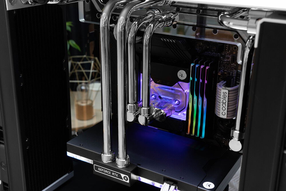 All water cooling components are from EK Water Blocks.