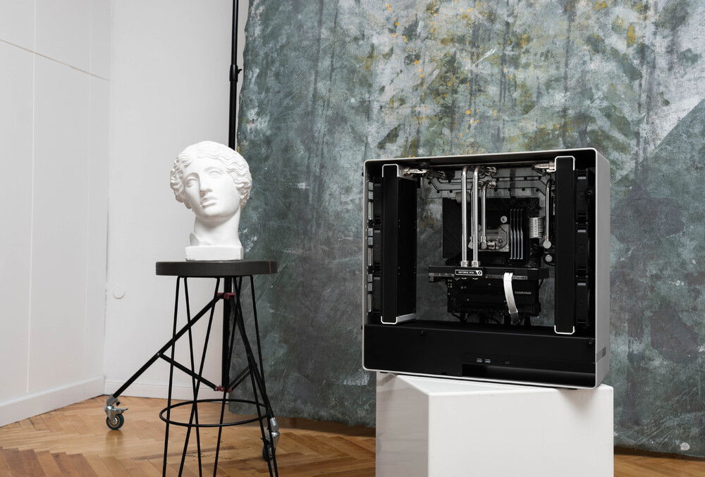I have redesigned InWin 909 to install water cooling. Only the outer frame and glass remain from the original case. The parts inside are made of aluminum (12 mm and 2 mm), some parts are made of stainless steel 2 mm and there are parts made of plastic on a 3D printer. Also for the first time I tried to make a distroplate, which was a very interesting experience.
