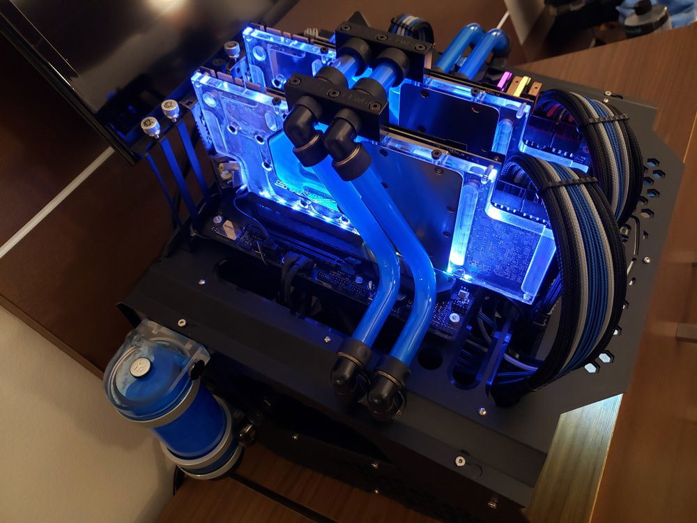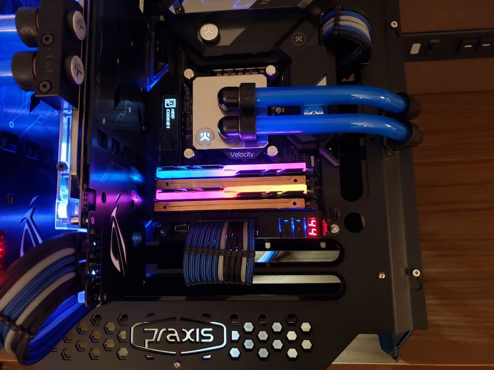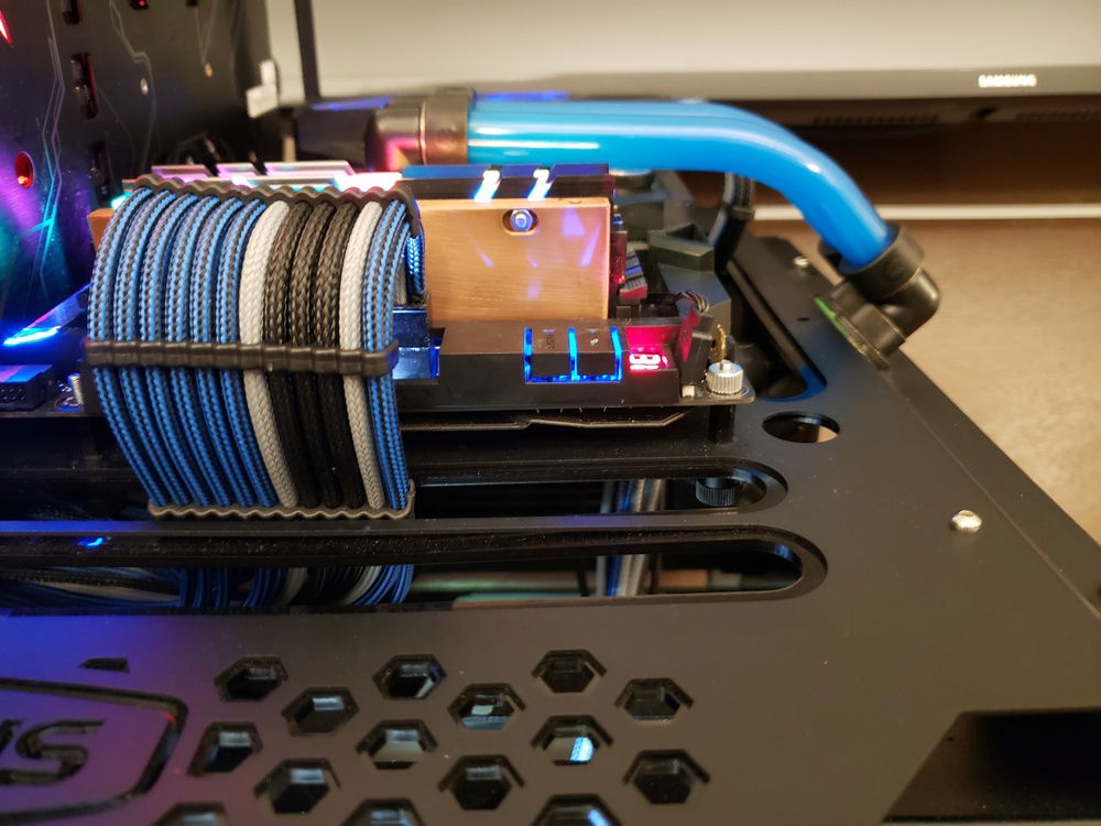 For the most part all water cooling parts are EKWB with a few bitspower fittings mixes in throughout I cables sleeves were done using mdpc-x