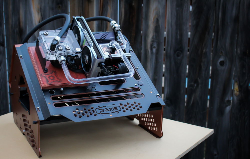 The size of the builds bench is ATX however due to the FLT120 trophy mount I used an ITX motherboard.