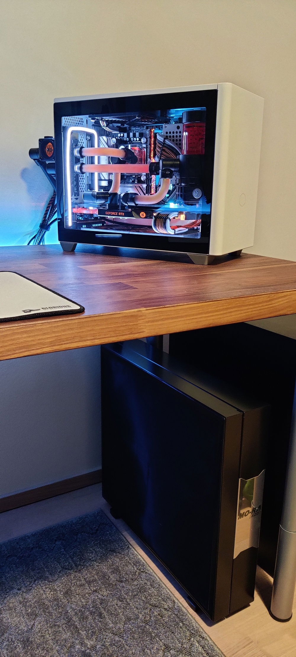 NR200P build with custom loop and an external MO-RA3 420 radiator. PSU cables are self made.