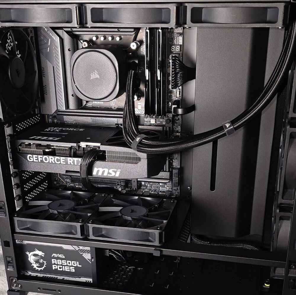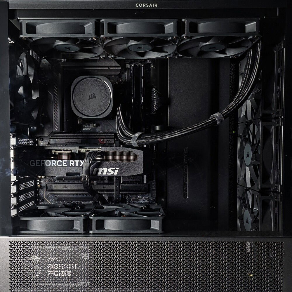 This is a blackout gaming build for a client & personal friend. This build came together beautifully. The performance and thermals are outstanding. Furthermore, the system is nearly silent, even when under benchmarking loads. The max CPU temp for single-core benchmark was 57C, and the max CPU temp for multi-core benchmark was 80C. All P-Cores & E-Cores boosted to their maximum frequency and stayed there for the duration of the testing. The system scored over 2300 pts in single-core (Cinebench R23), and just over 37200 pts in multi-core.