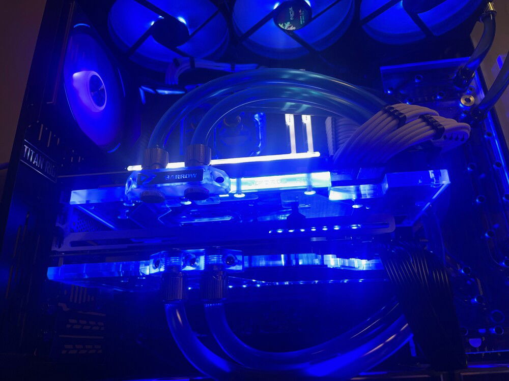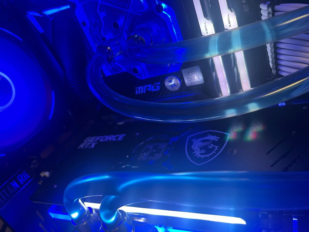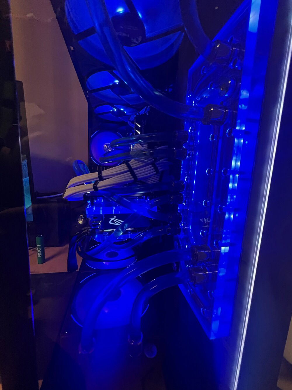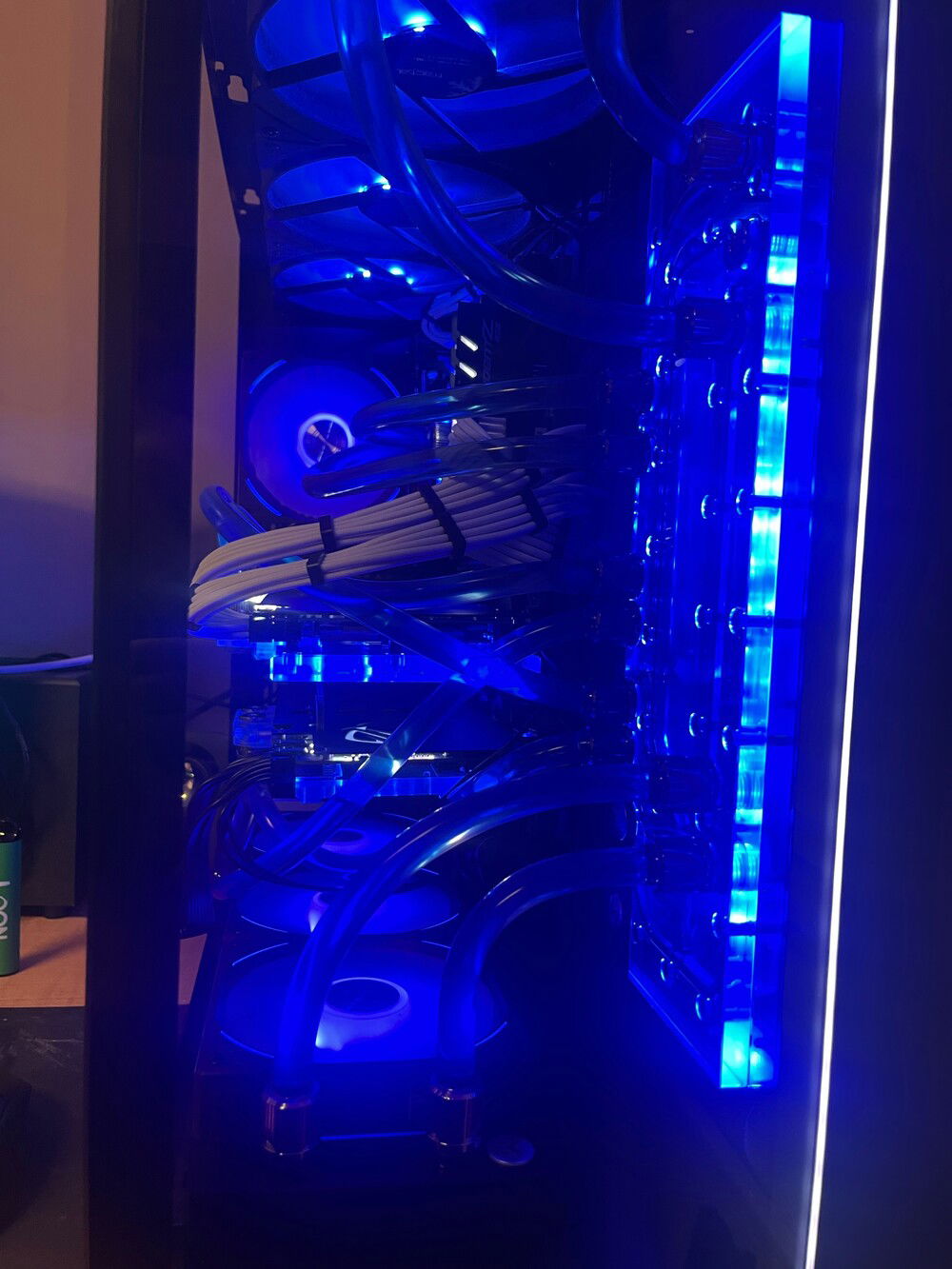 This is my first fully water-cooled build. It is only my second build. I used the main components from my last PC to make this. I had enough trouble with it as it is, I did not need the added hassle of rigid tubing. But I kinda like the soft tubes anyway. Also, I bring this rig to college so cable management is not the best as it gets disassembled somewhat often.