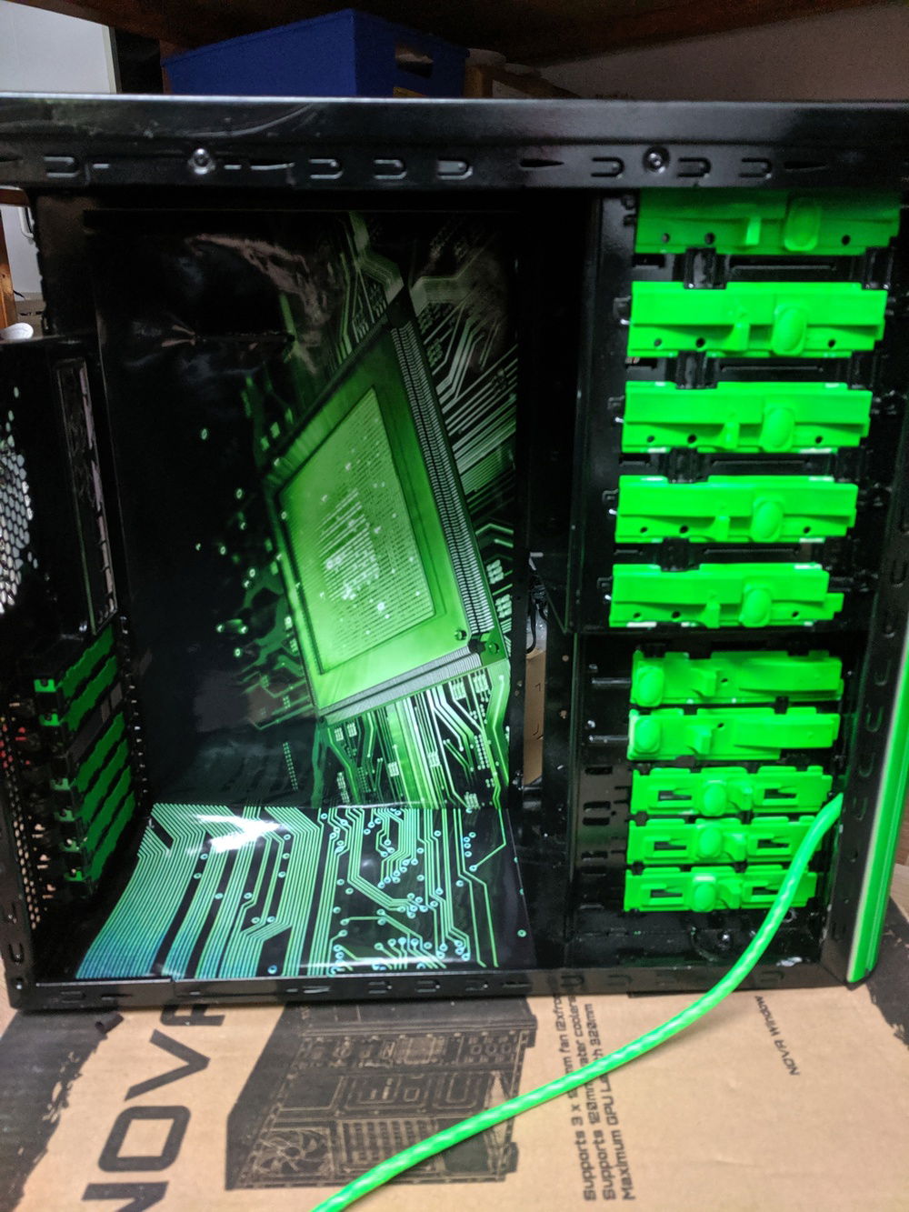 This is a data center for my house, This pc is a old case remake in new look for fun.