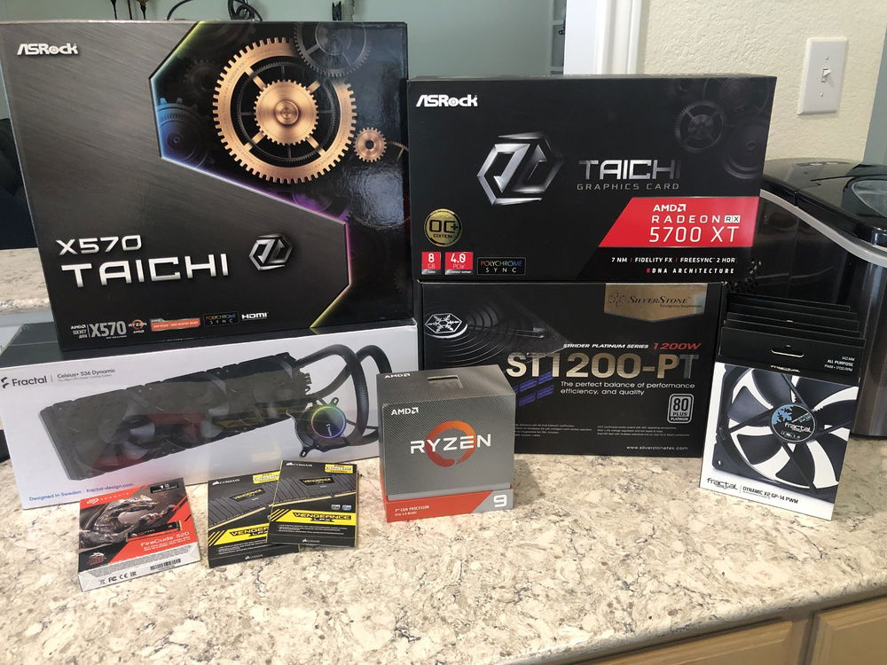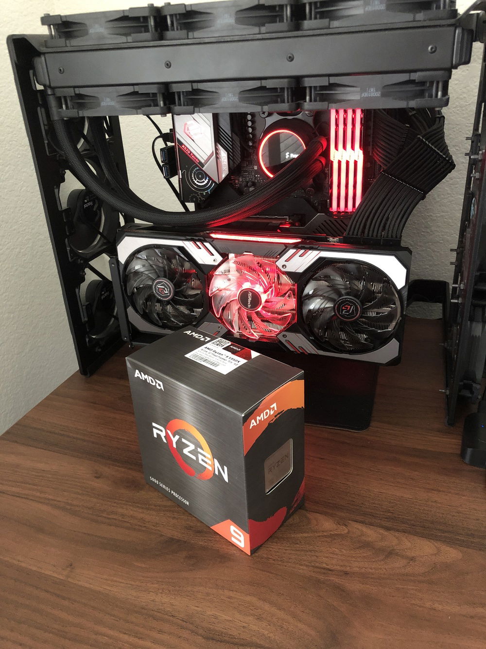 5950X in X570 TaiChi with RX 6900 XT Phantom Gaming OC, 32 GB of GSkill Trident Z Neo and Silvertone Platinum 1200 Watt PSU with Cable Sleeved cables. 6X Noctua F12 industrial fans in the Fractal Celsius S36+ and 6x Fractal X2 fans on the outside of the chassis